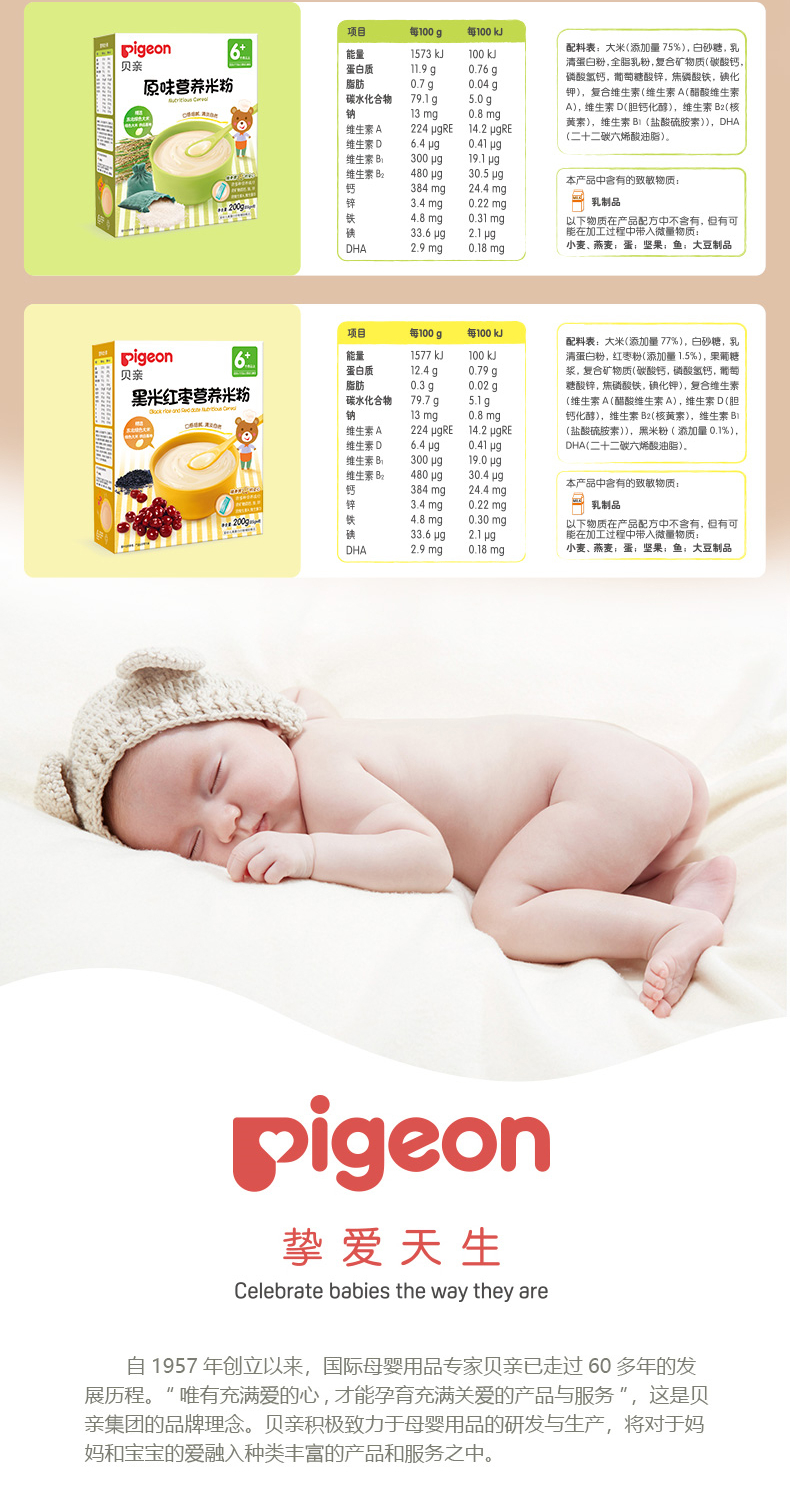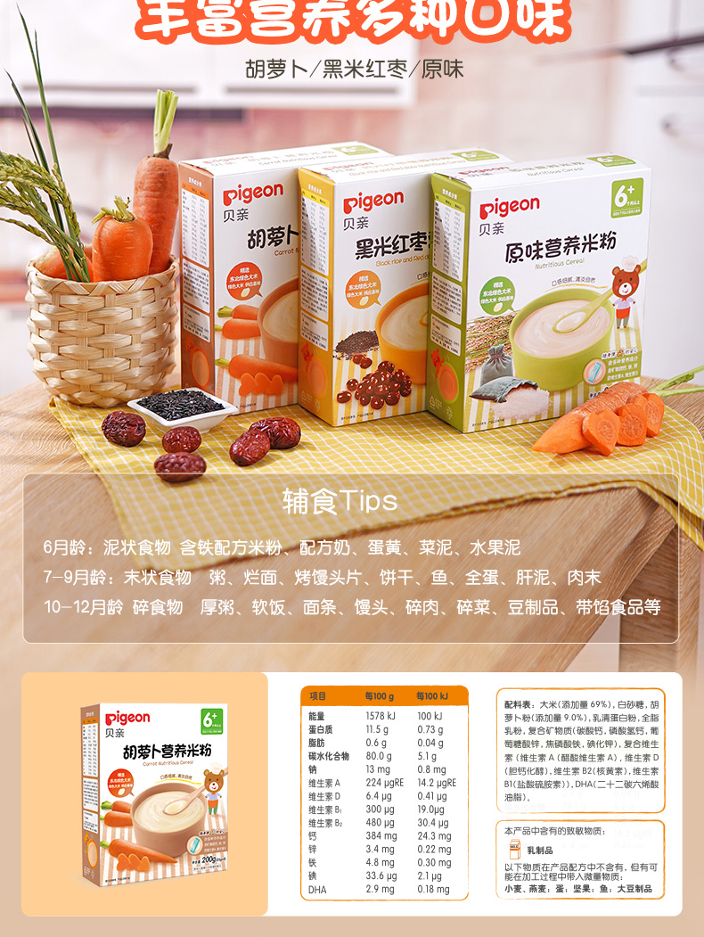 Pigeon贝亲婴儿营养米粉原味200g(6-36个月)[FPLFA01]