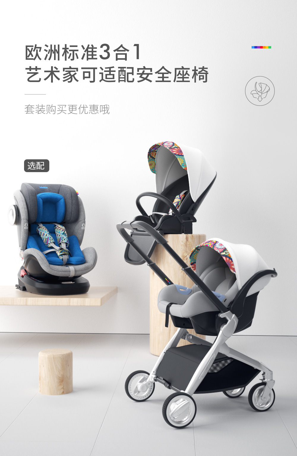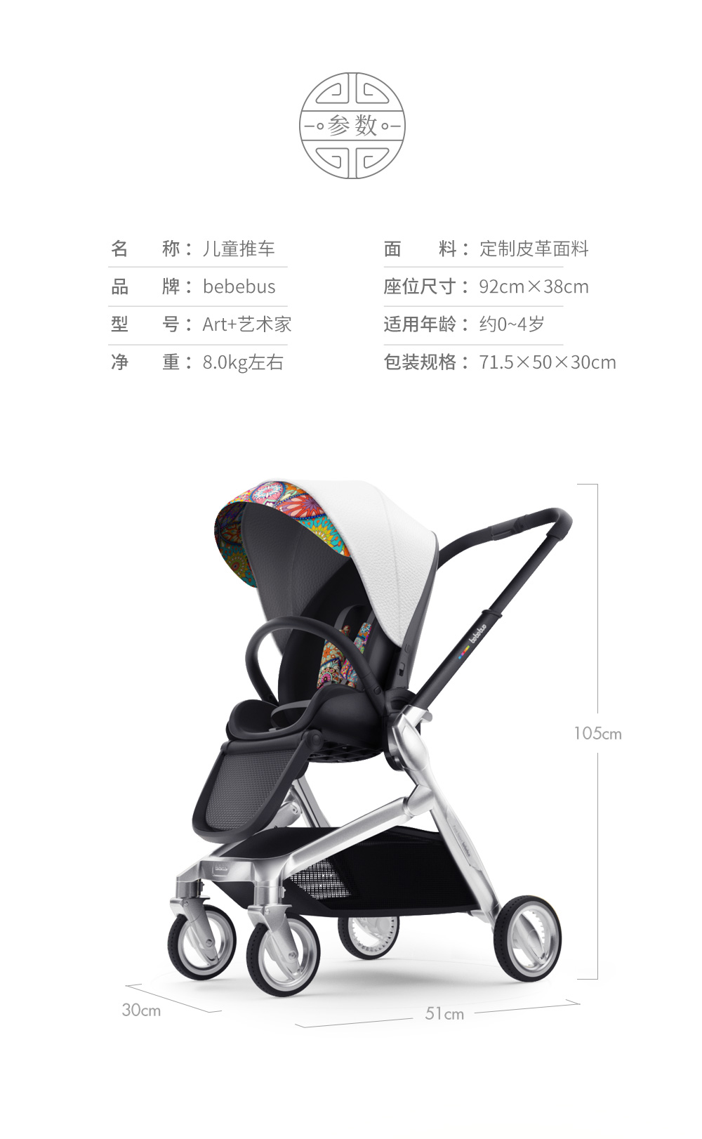 bebebus婴儿推车双向轻便高景观儿童推车可坐可躺易折叠宝宝童车艺术家 曼荼罗