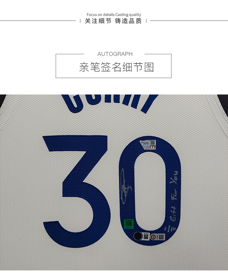 收藏系列 库里 白色球员版 GIFT 亲笔签名球衣