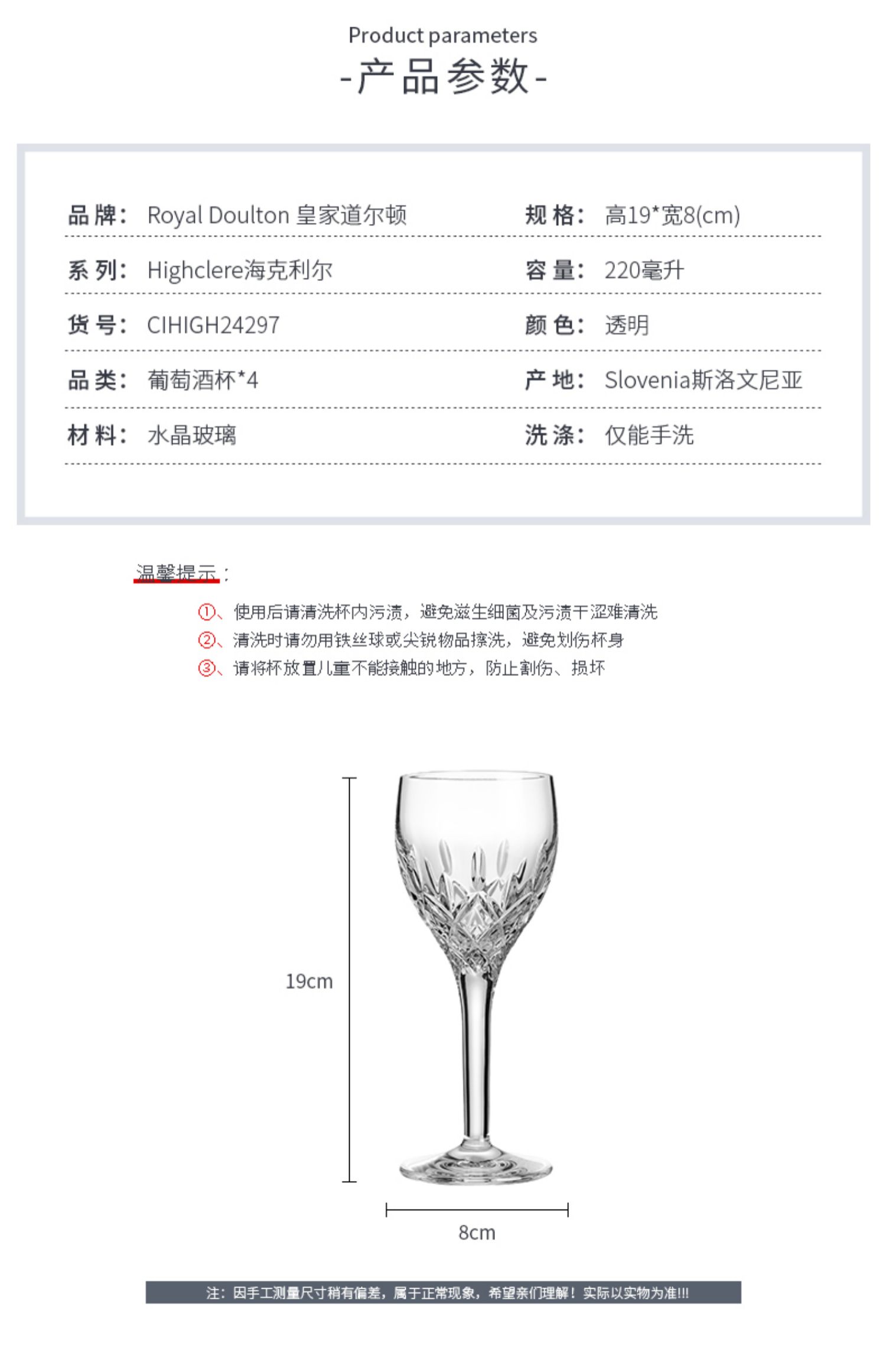 Royal Doulton 海克利尔白葡萄酒杯四件套水晶玻璃葡萄酒杯 果酒杯子礼盒套装