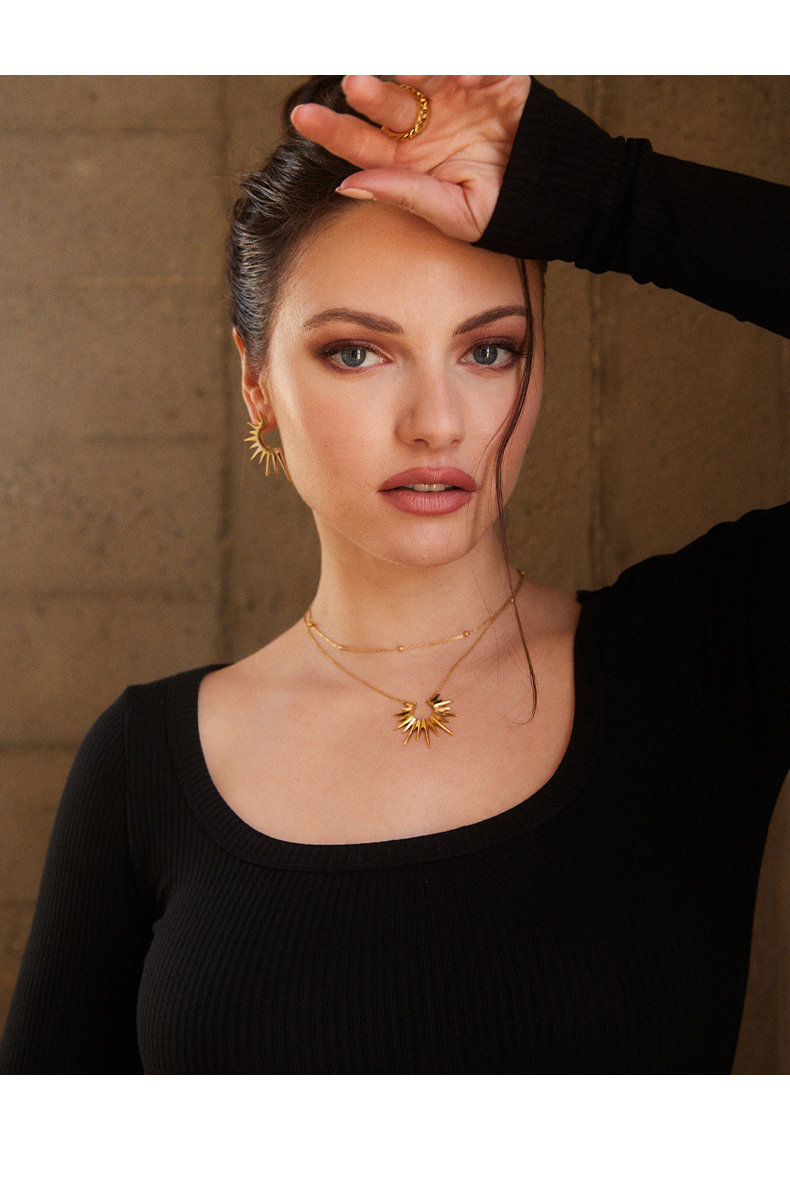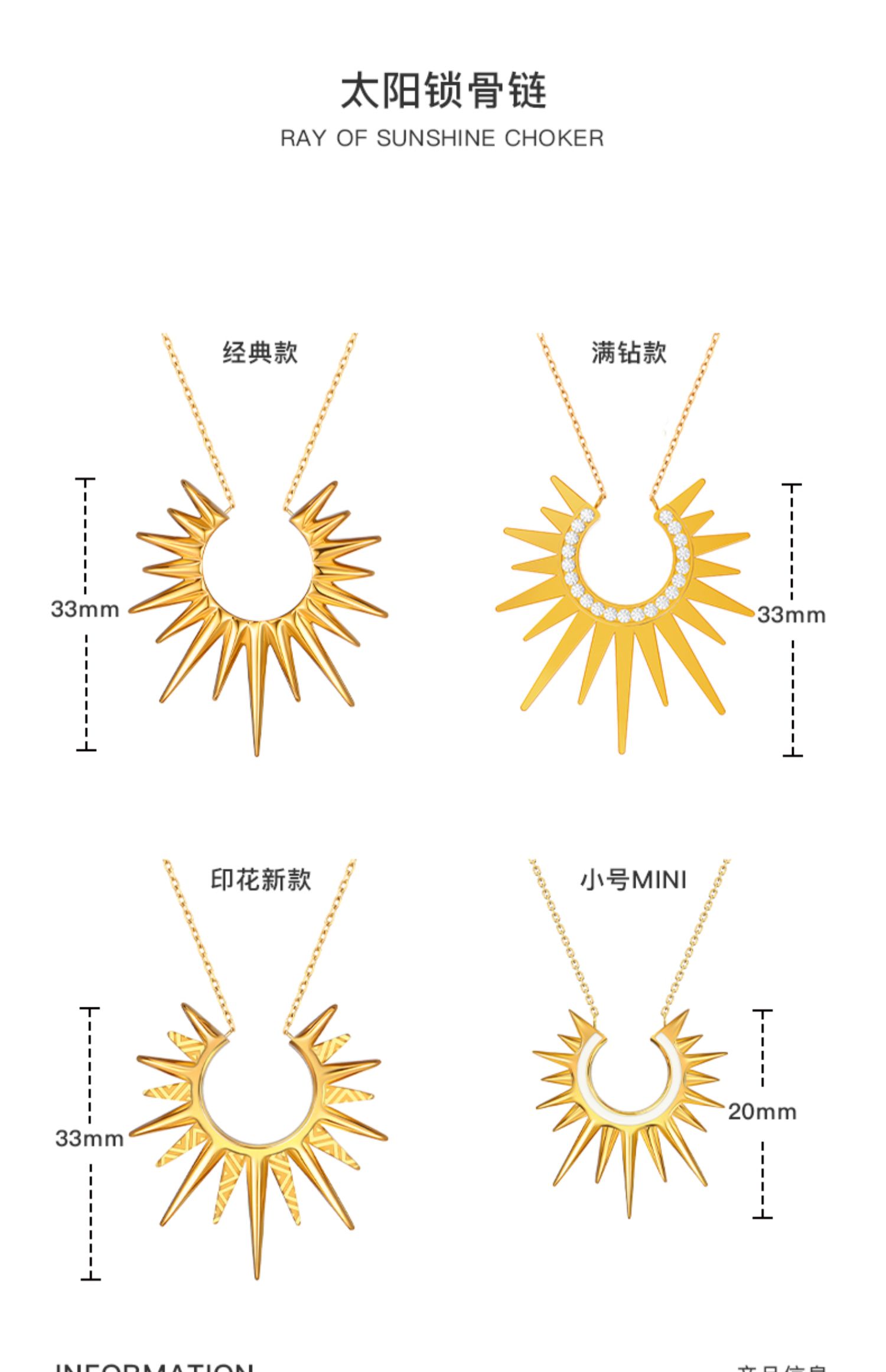 Rawness/契健 太阳项链 金色短链 太阳锁骨链小众轻奢项链18k金送女友长毛衣链