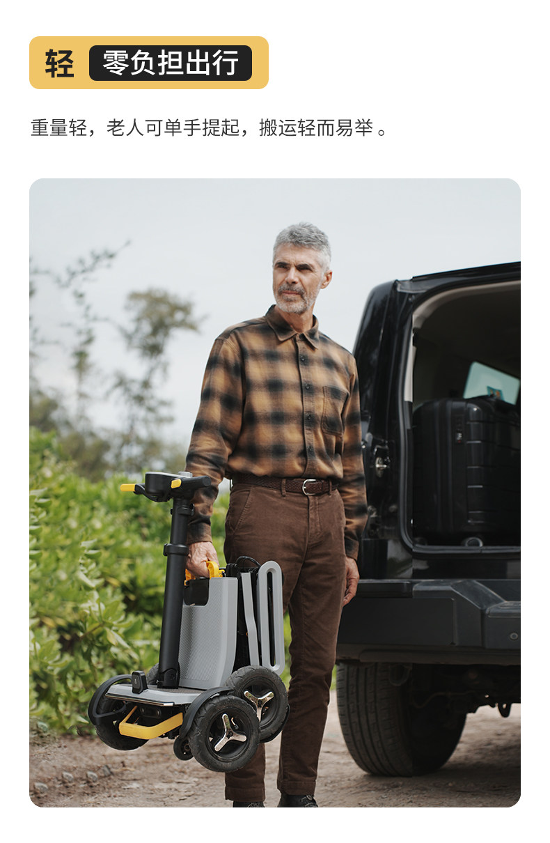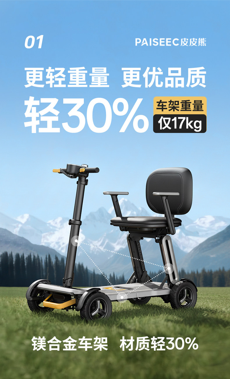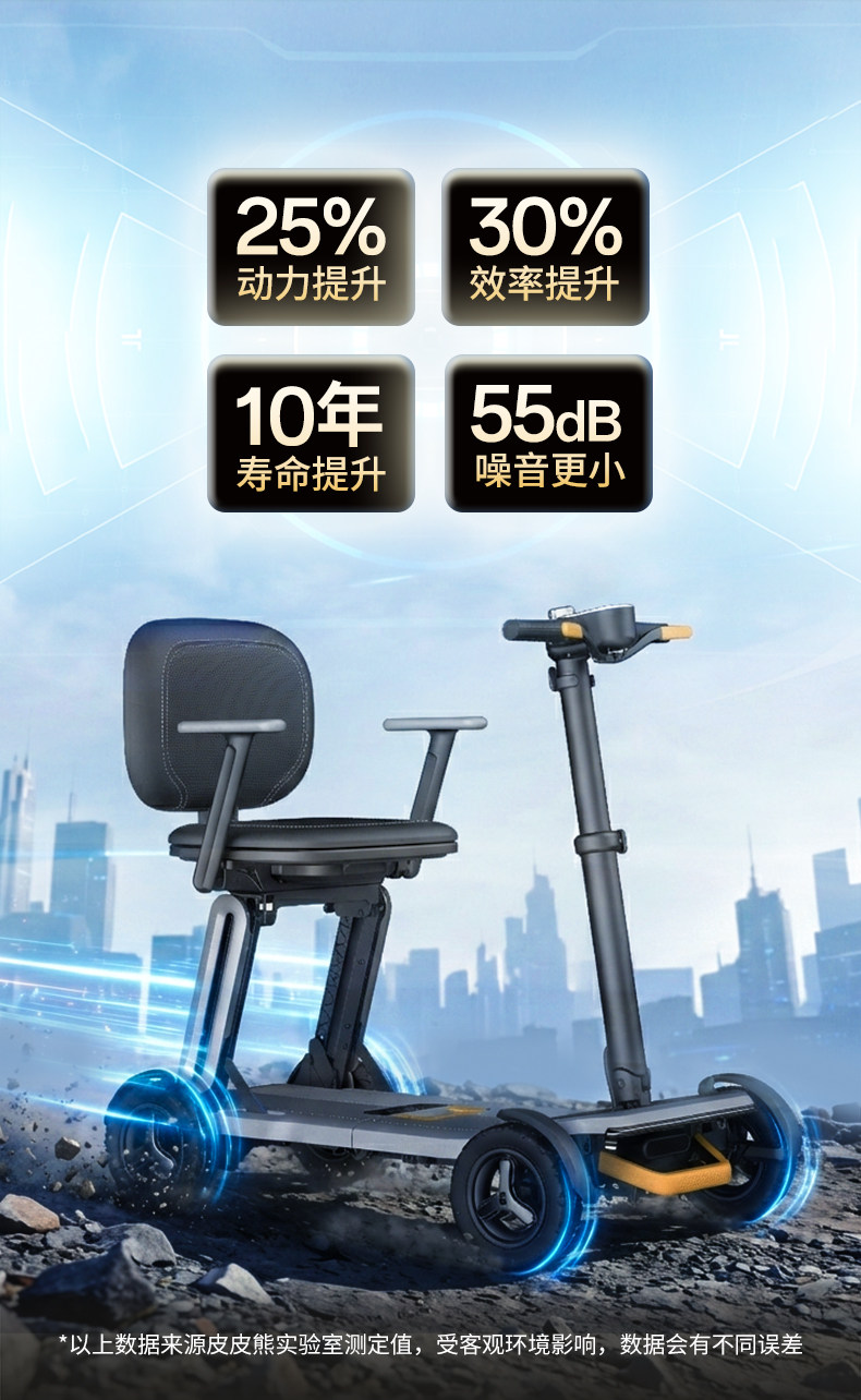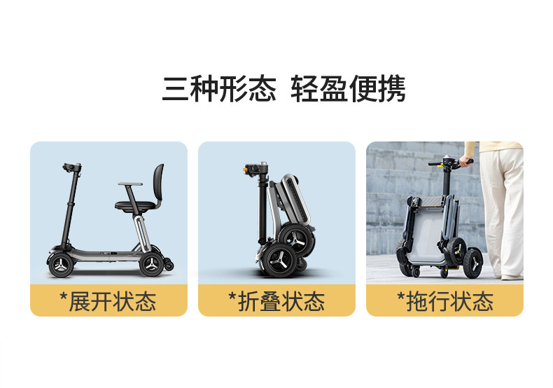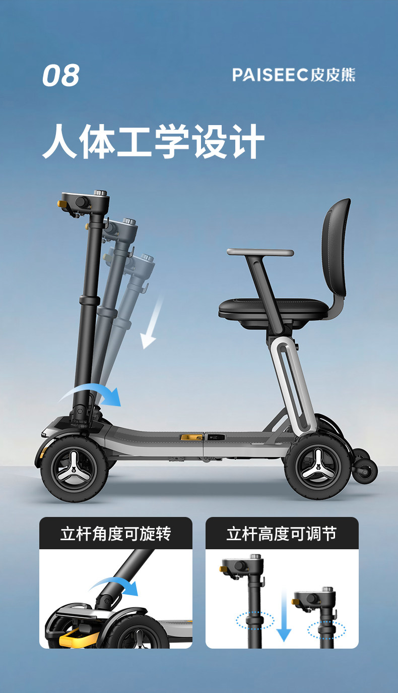 皮皮熊 便捷折叠四轮智能电动车 高端轻便老人代步车折叠便携老年智能防撞安全车
