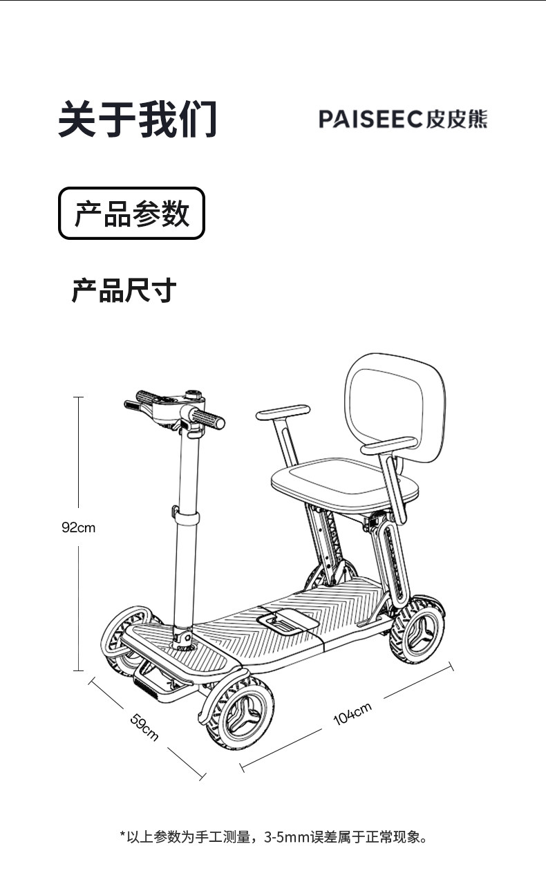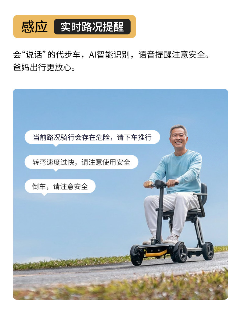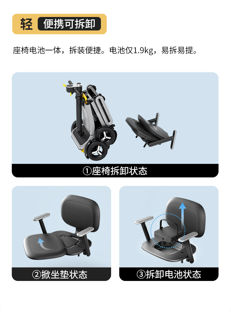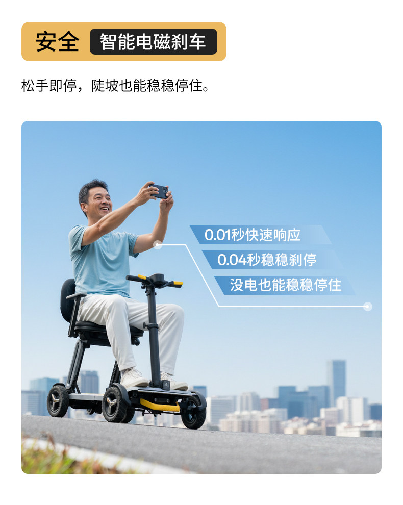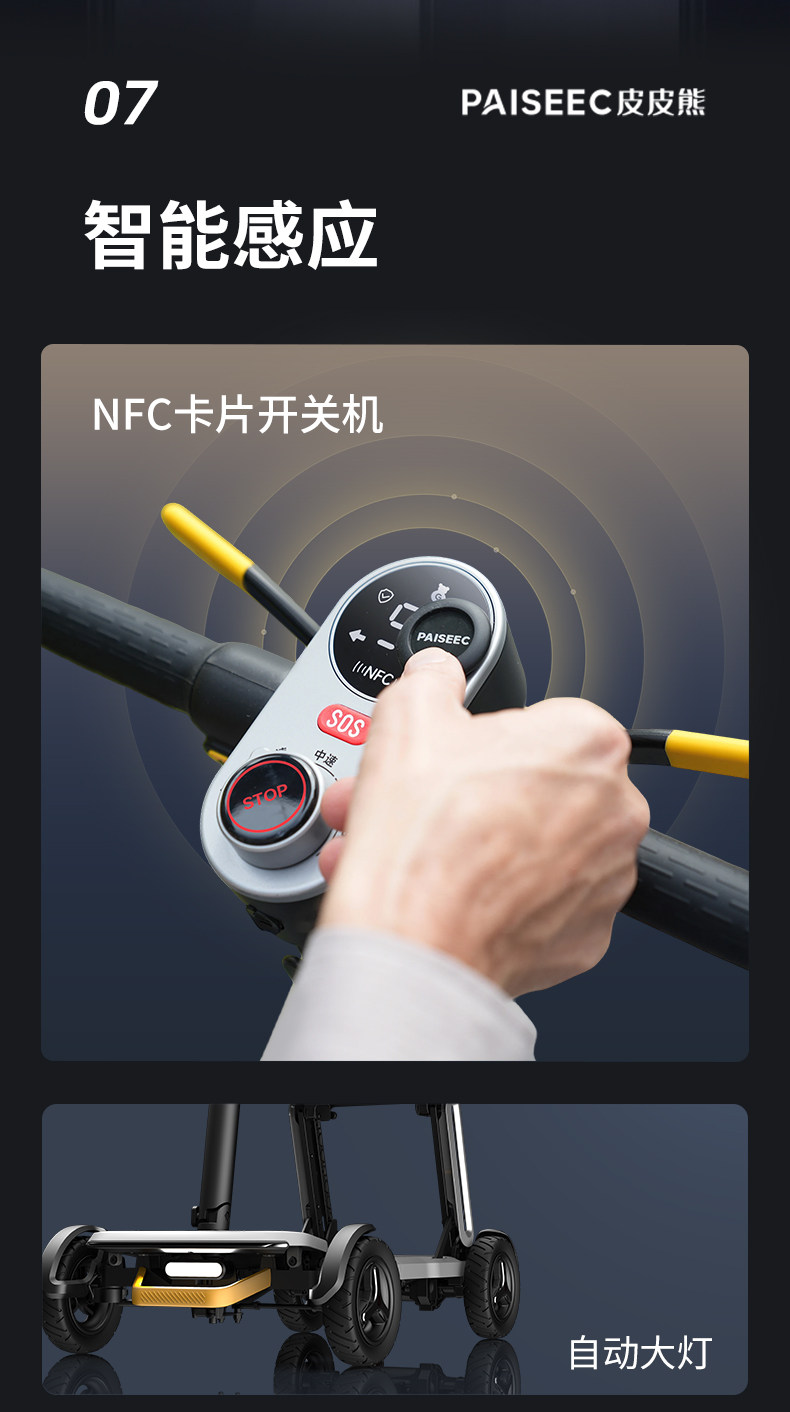 皮皮熊 便捷折叠四轮智能电动车 高端轻便老人代步车折叠便携老年智能防撞安全车