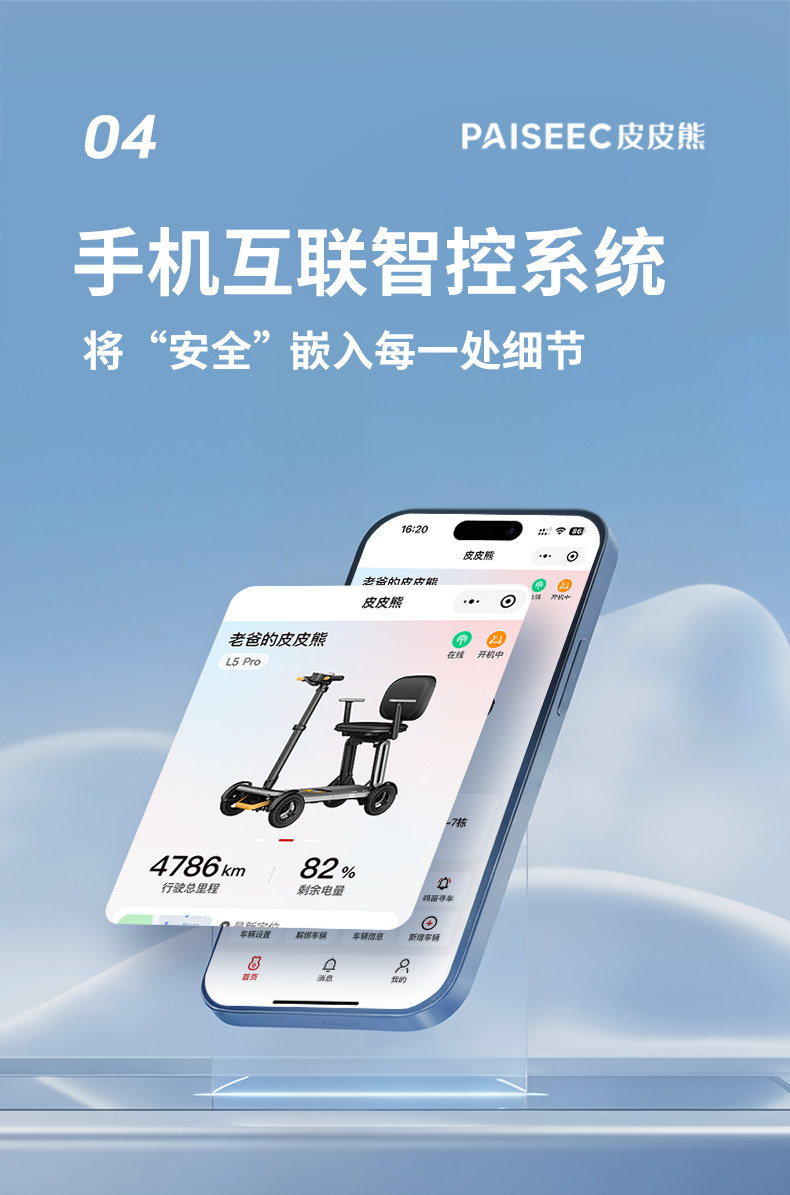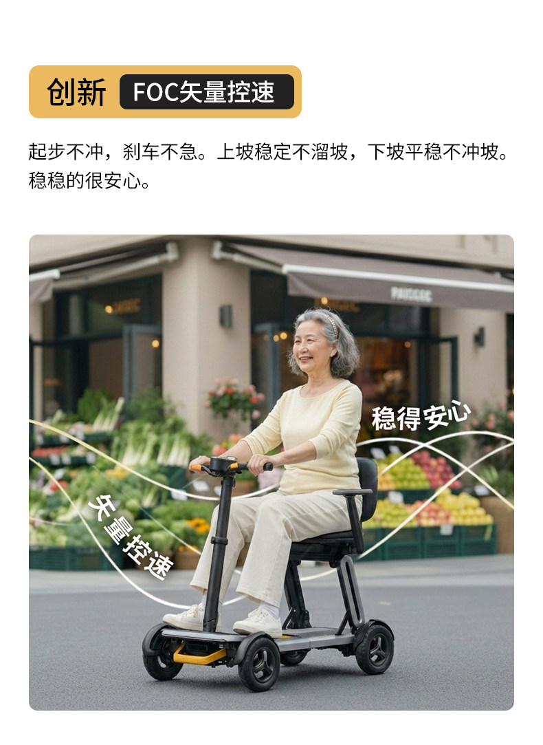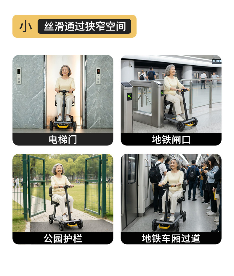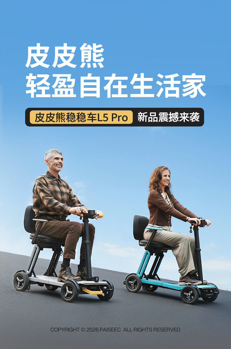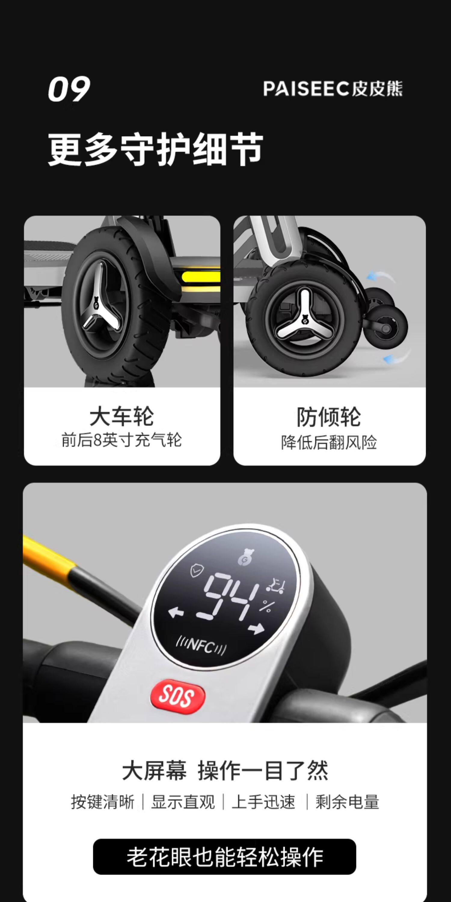 皮皮熊 便捷折叠四轮智能电动车 高端轻便老人代步车折叠便携老年智能防撞安全车