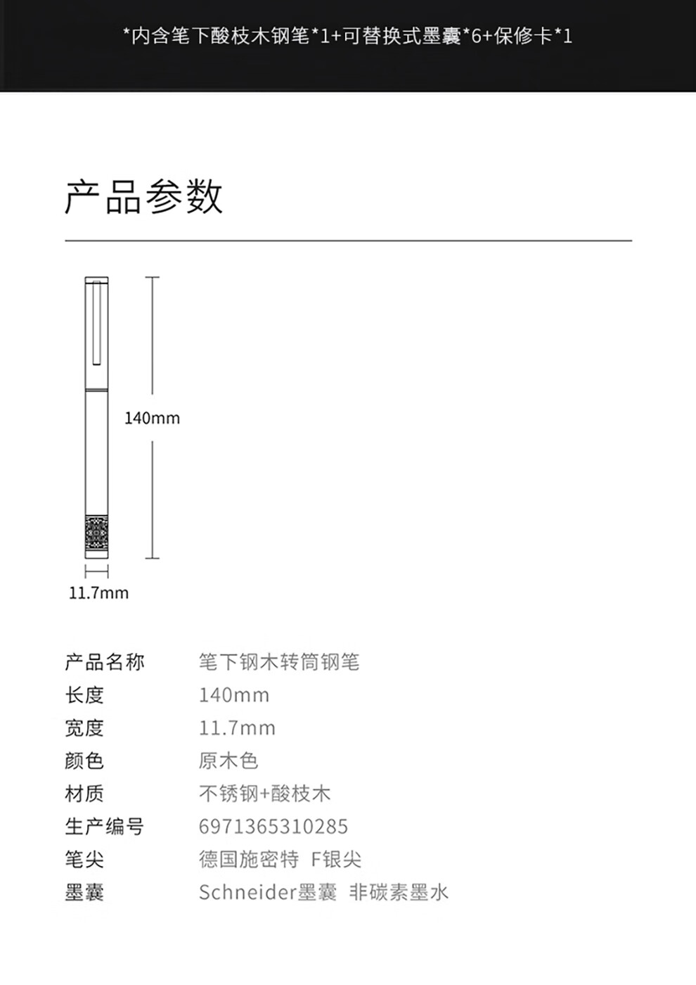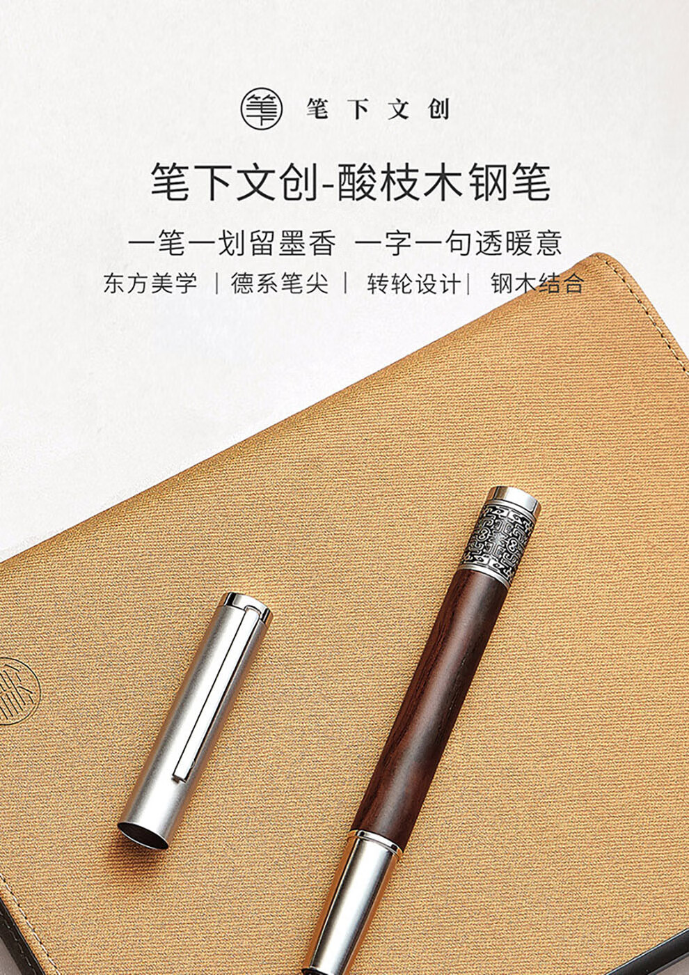 笔下 钢木转经筒钢笔 轮回 酸枝木 原创解压国潮送男女生日礼物商务办公礼品笔礼盒