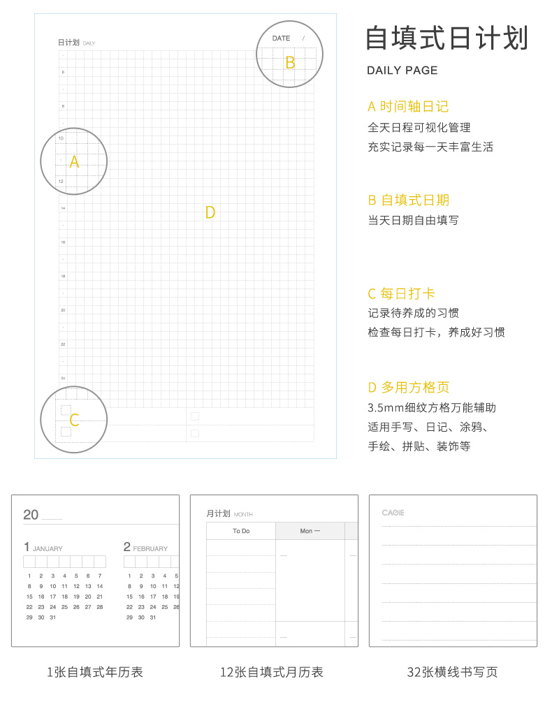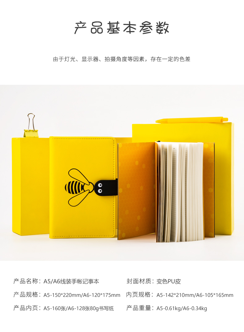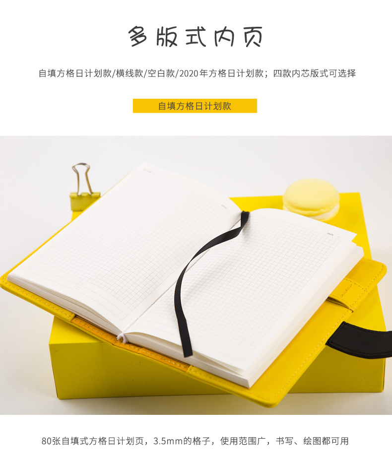 卡杰可爱少女心方格子手账本日记本笔记本子网格创意便携随身小记事本小学生简约文艺精致网红女手帐本ins风蜂靡我心系列A6/A5