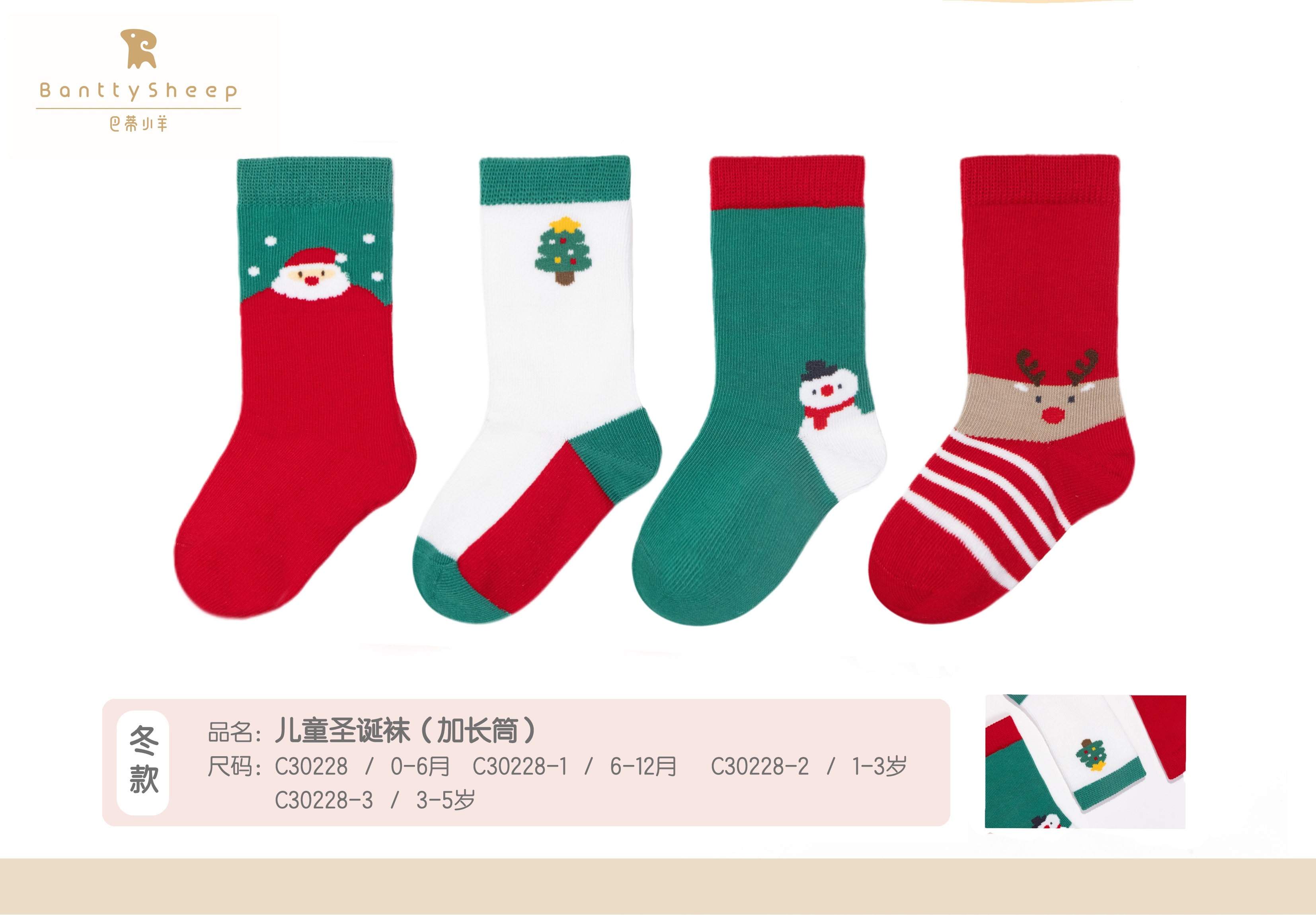 C30228巴蒂小羊0-5岁儿童圣诞袜(单双加长筒,颜色到店自选)