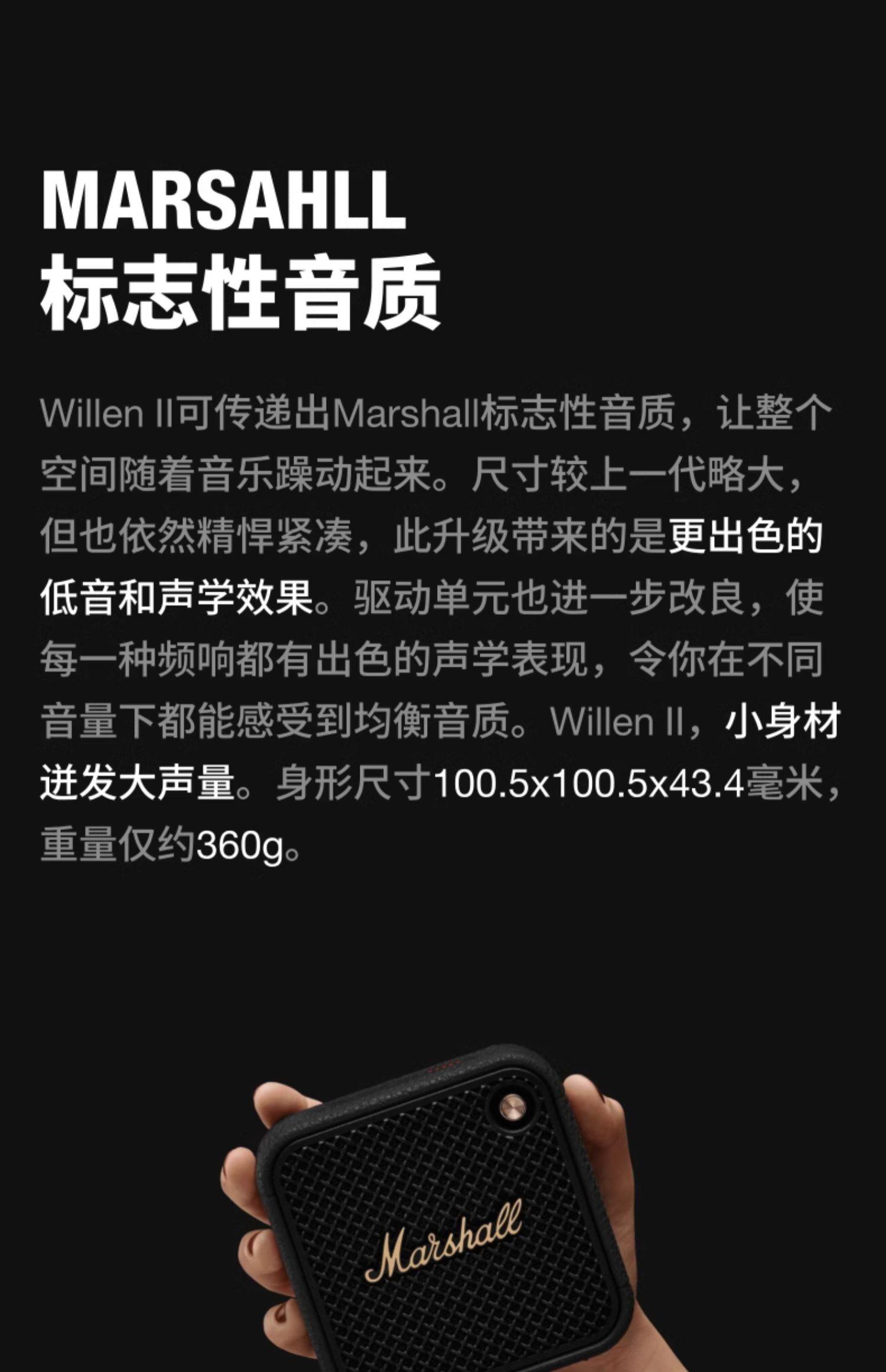 Marshall/马歇尔 WILLEN 2代 便携蓝牙音箱 小音响低音炮户外生日礼物