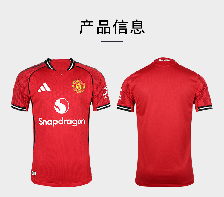 小李子ADIDAS阿迪达斯25/26赛季曼联球员版主场短袖球衣JI7429
