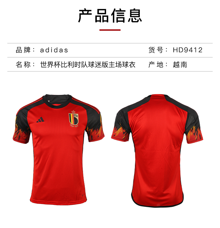 ADIDAS/阿迪达斯2022世界杯比利时队球迷版主场比赛球衣成人男HD9412