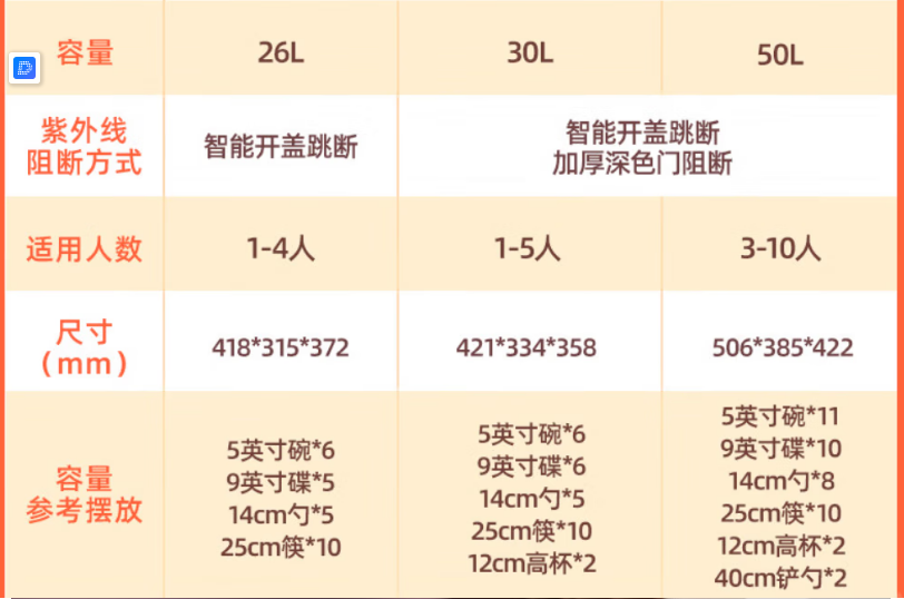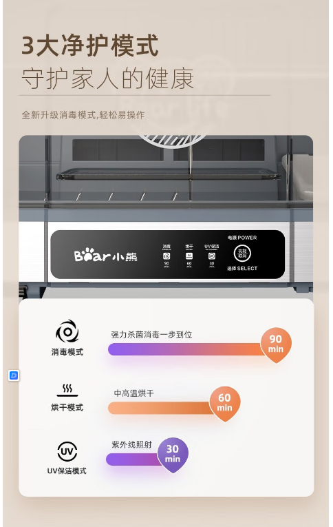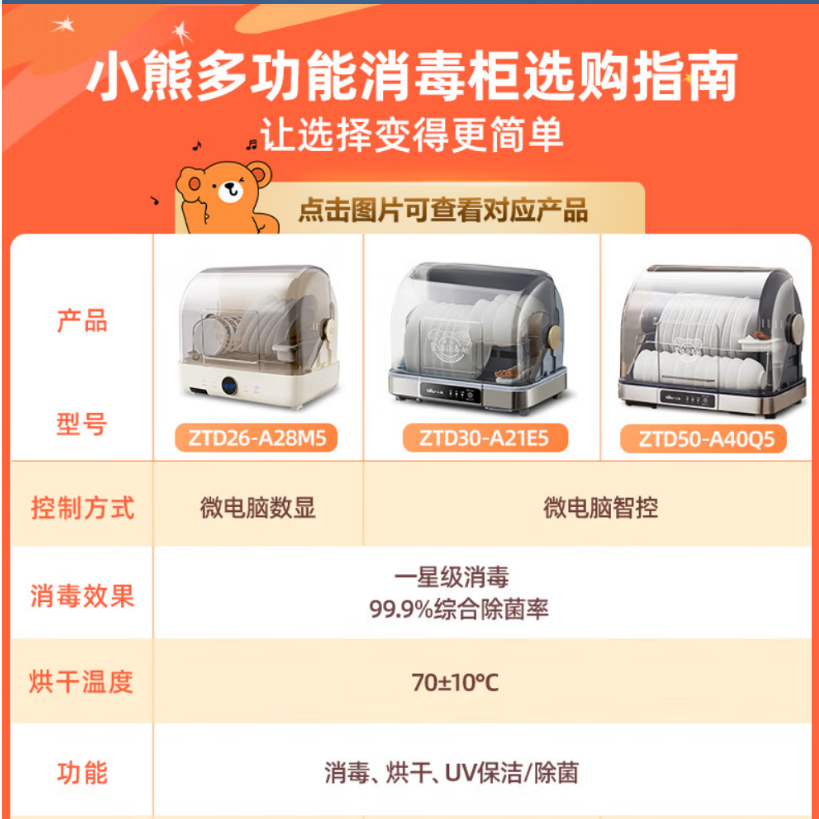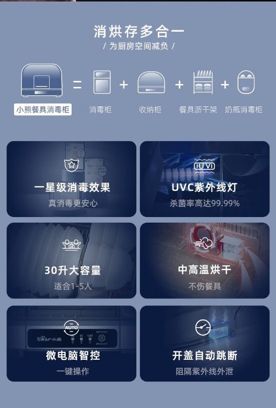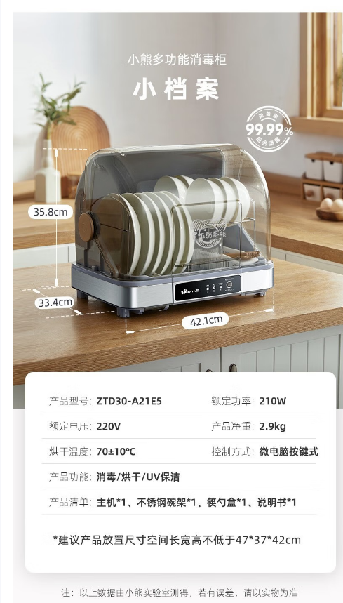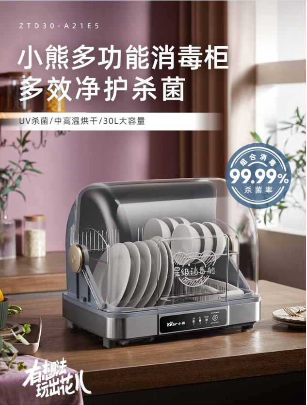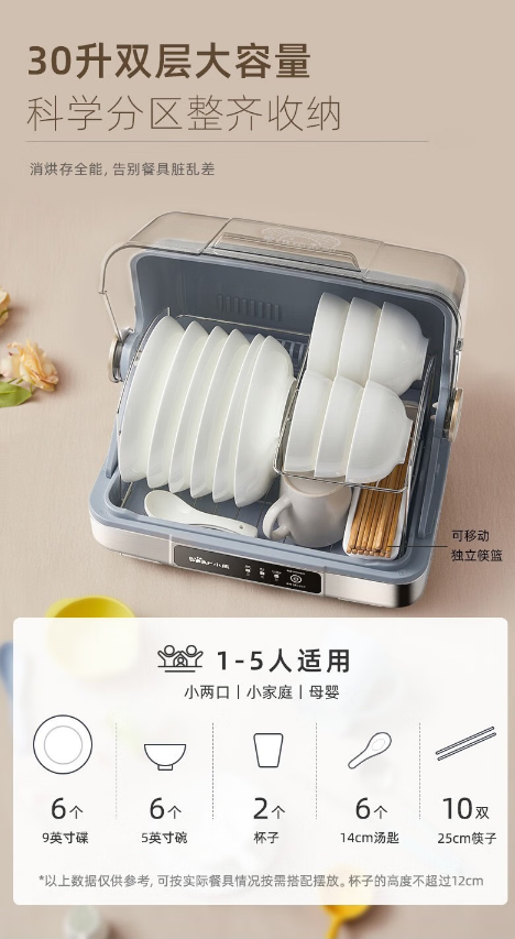 小熊厨房碗筷餐具收纳消毒柜保洁柜烘干柜30L【不支持补差,非质量问题不退不换】S