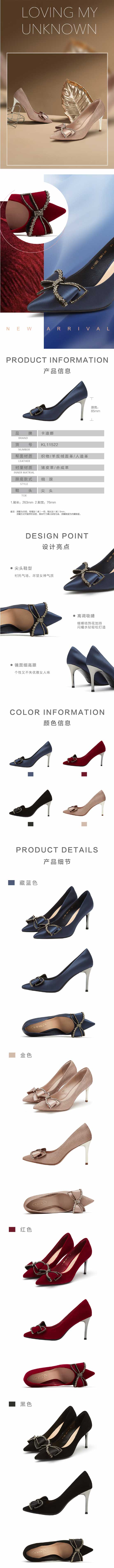卡迪娜2021秋季新款商务通勤尖头细跟高跟婚礼宴会女单鞋KL11522