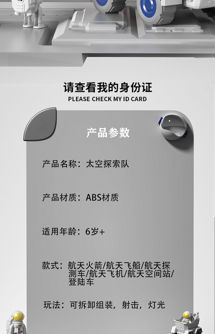 太空探索队益智拼装玩具航天火箭发射飞船飞机探测车空间站宇航员礼物狸盒