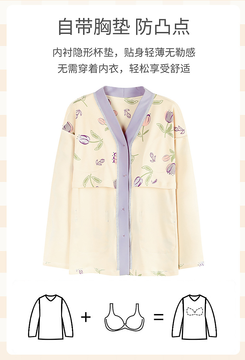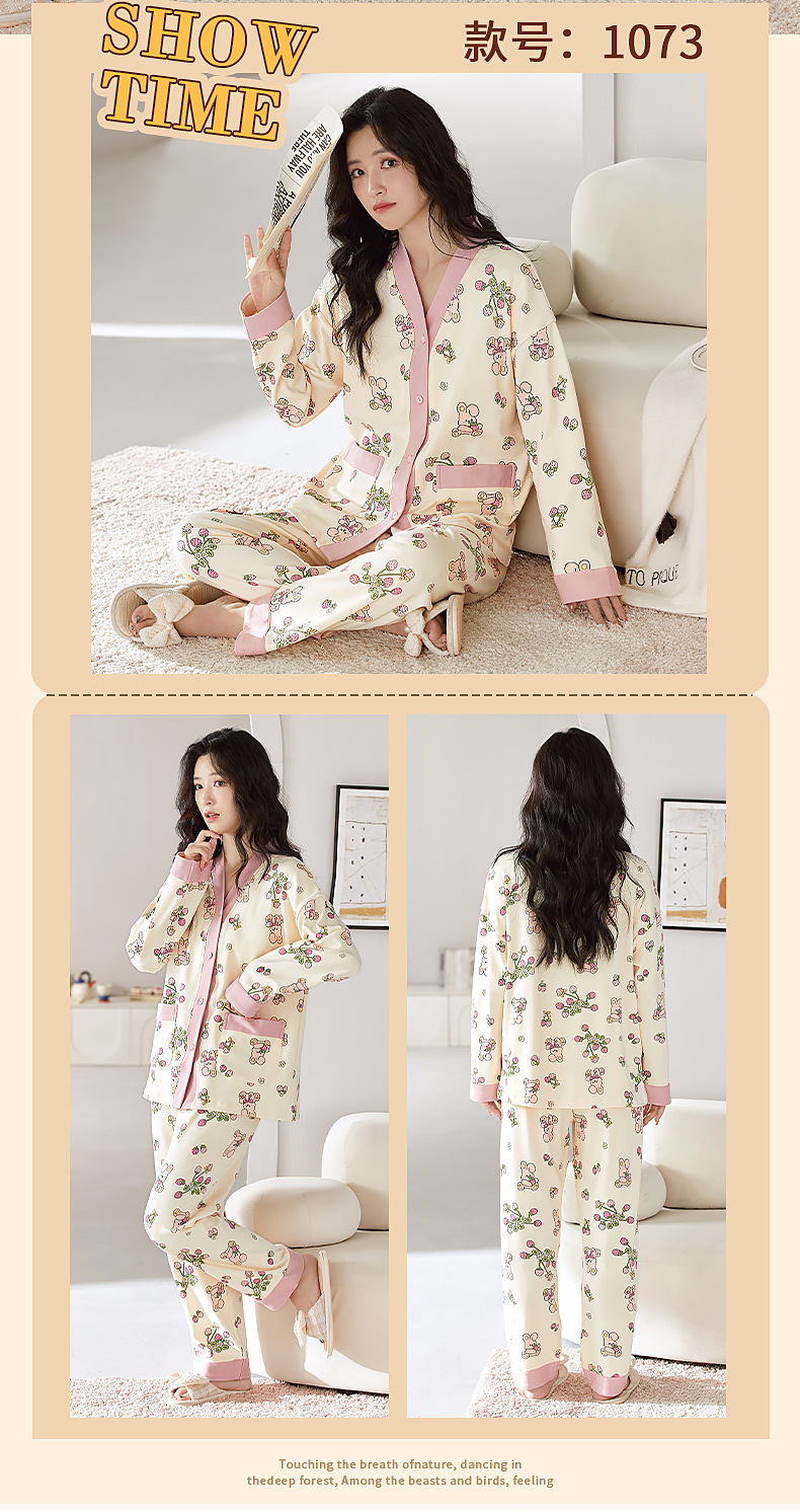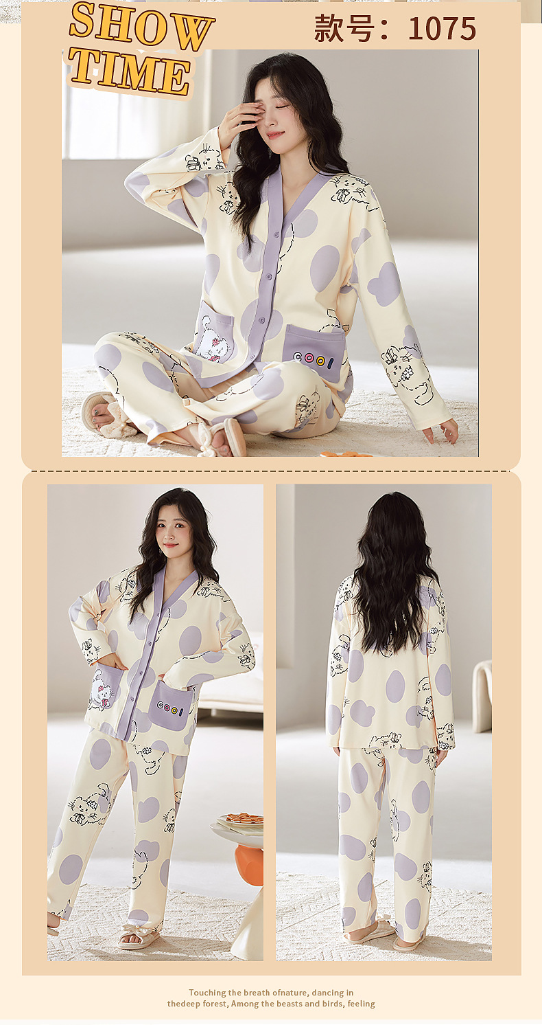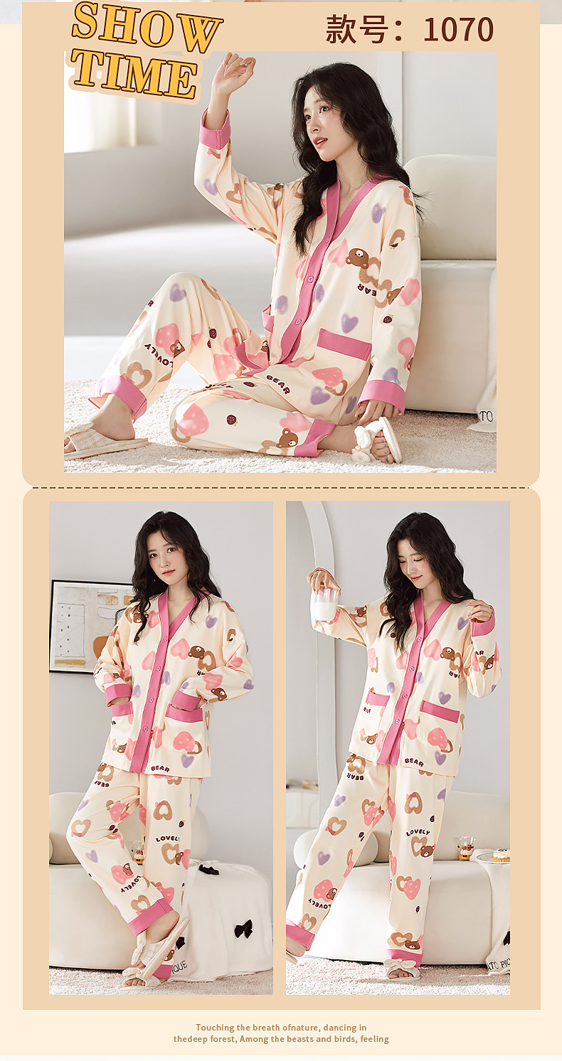2025带胸垫卡通睡衣女春秋款冬季长袖开衫和服棉质家居服女两件套