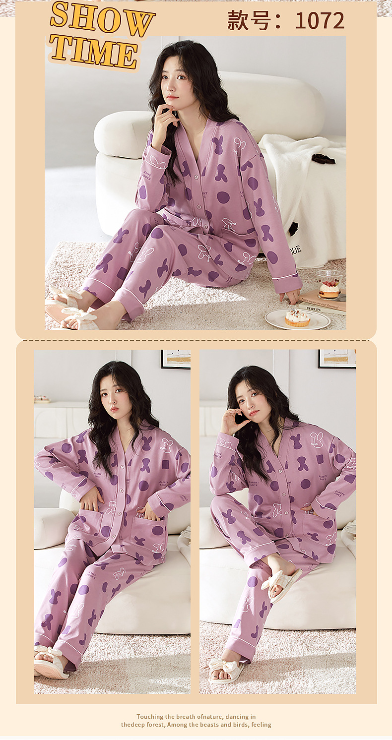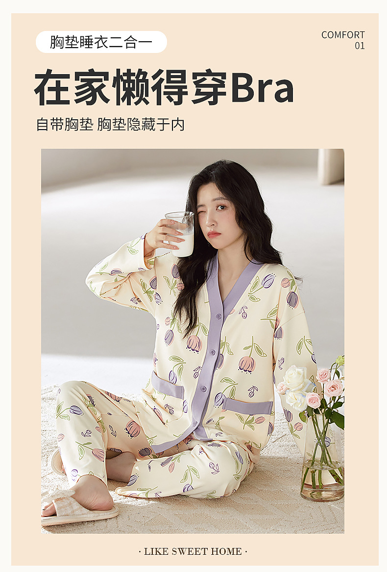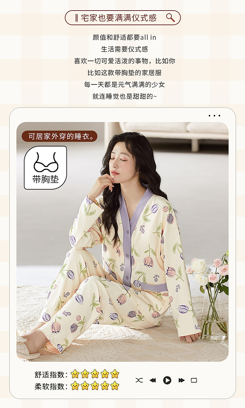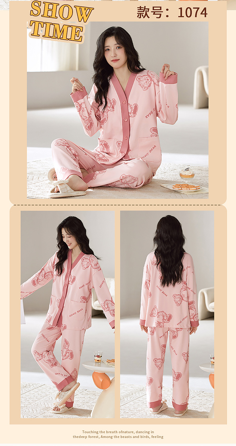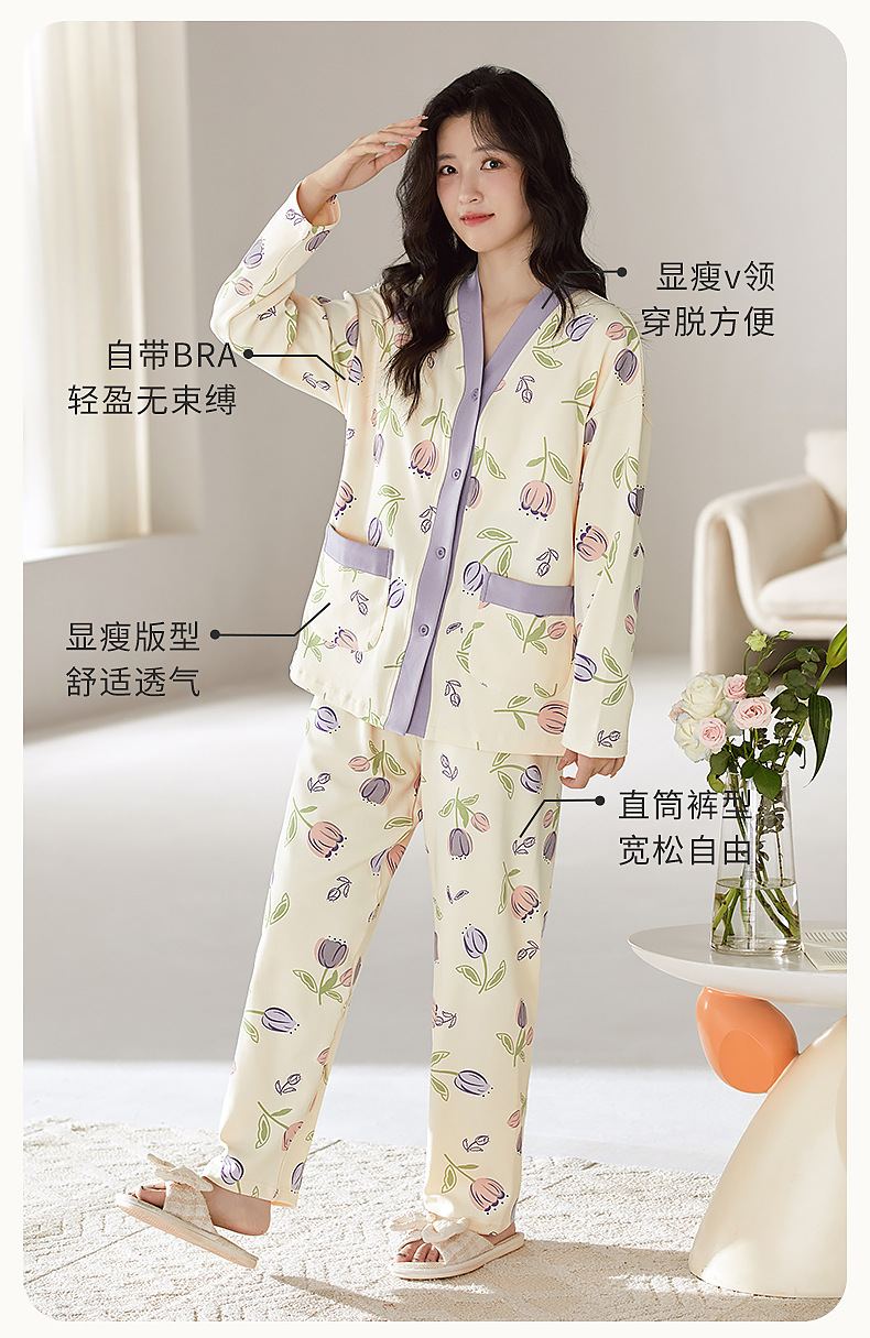 2025带胸垫卡通睡衣女春秋款冬季长袖开衫和服棉质家居服女两件套
