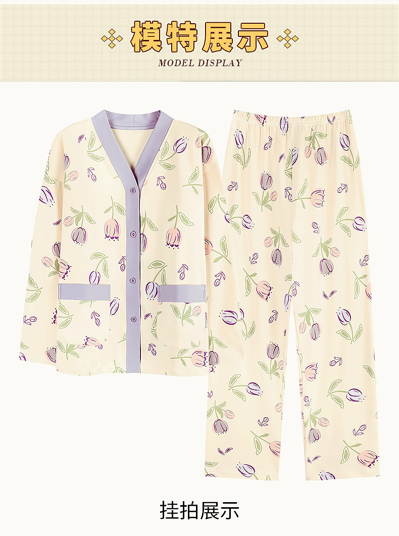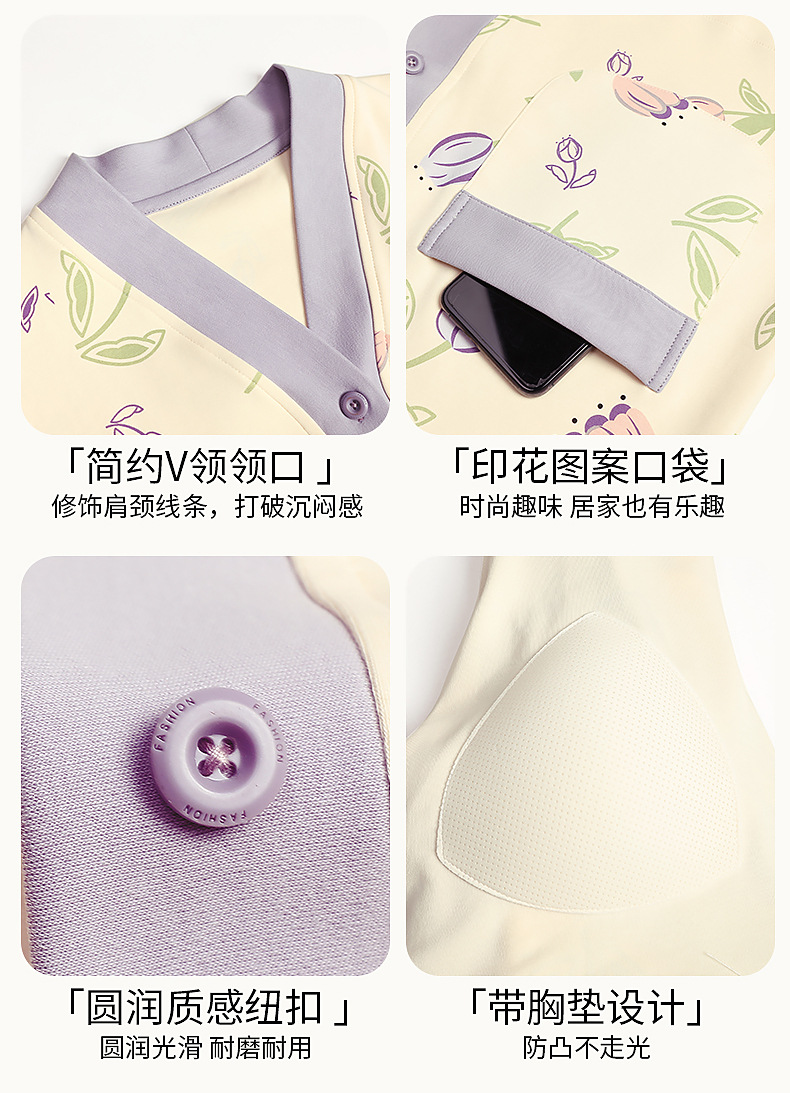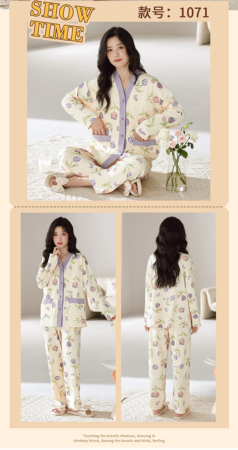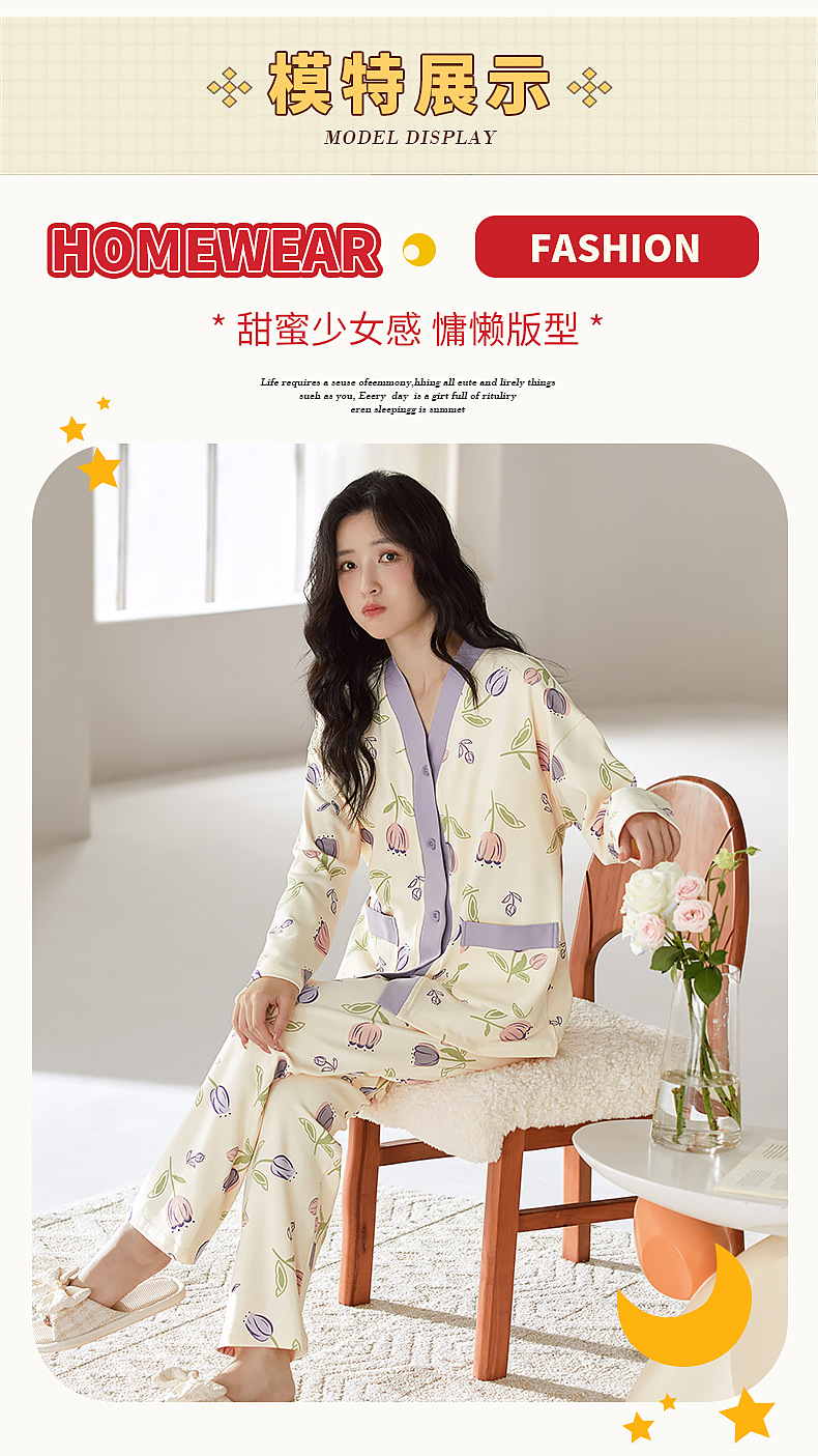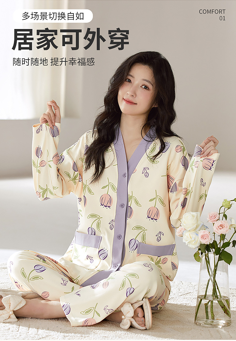 2025带胸垫卡通睡衣女春秋款冬季长袖开衫和服棉质家居服女两件套