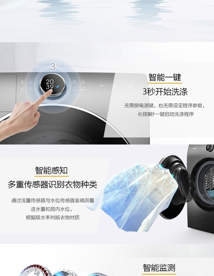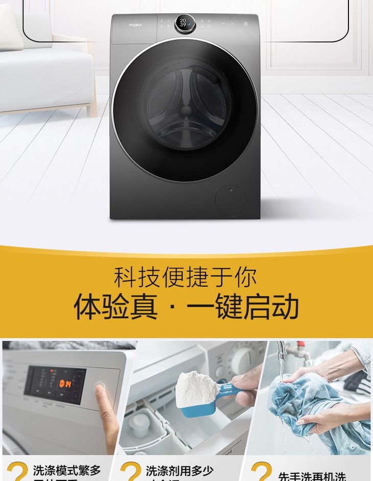 惠而浦(Whirlpool) WFD100944BAOT 帝王DD变频滚筒洗衣机真.一键启动、智能洗涤新体验