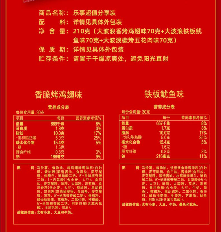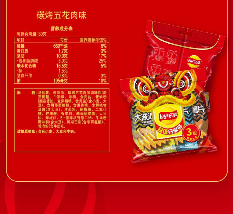 乐事大波浪薯片70g*3袋超值分享装