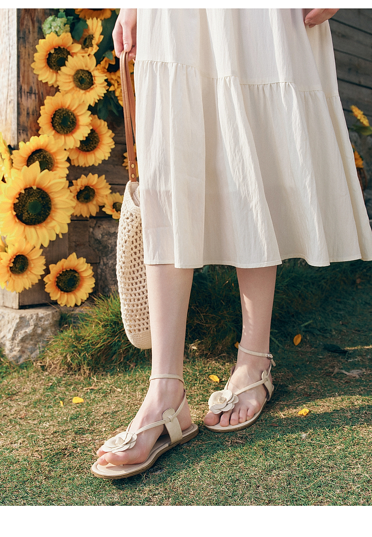 两三事暮色诗行2025夏季新款复古一字肩露肩条纹印花泡泡袖连衣裙
