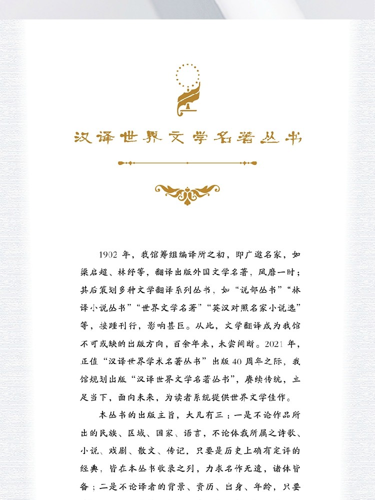 ·世界文学,完整呈现:不计代价,长期积累,力求成就反映世界文学经典全貌的汉译精品丛书。