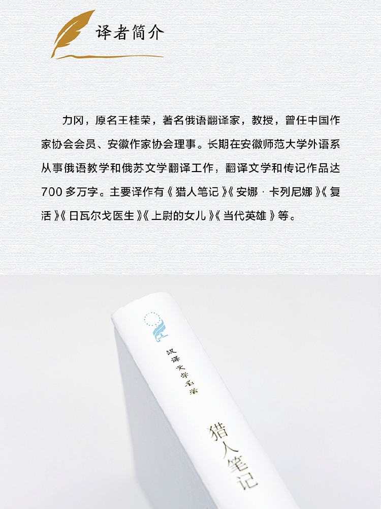 力冈,原名王桂荣,著名俄语翻译家,教授,曾任中国作家协会会员、安徽作家协会理事。长期在安徽师范大学外语系从事俄语教学和俄苏文学翻译工作,翻译文学和传记作品达700多万字。主要译作有《猎人笔记》《安娜•卡列尼娜》《复活》《日瓦尔戈医生》《上尉的女儿》《当代英雄》等。