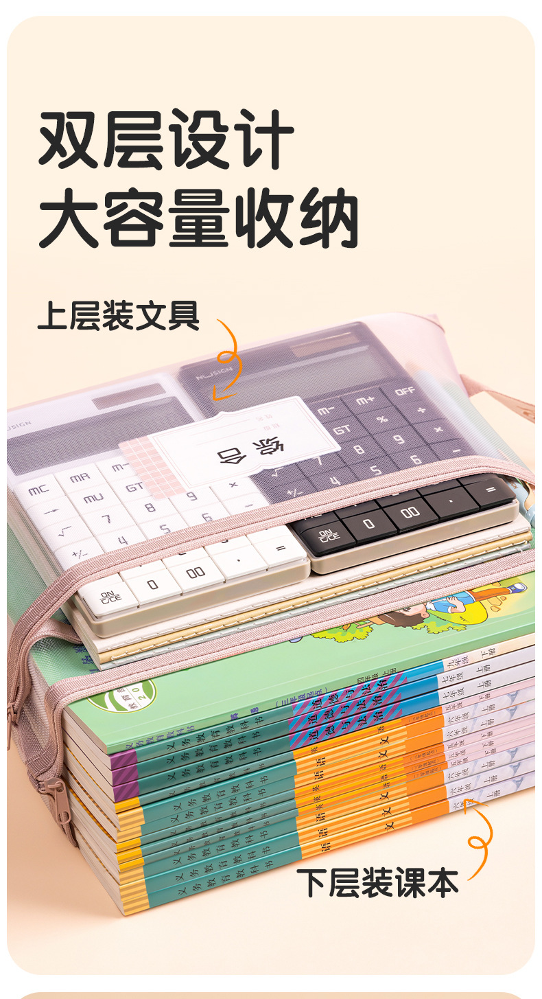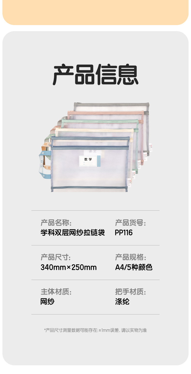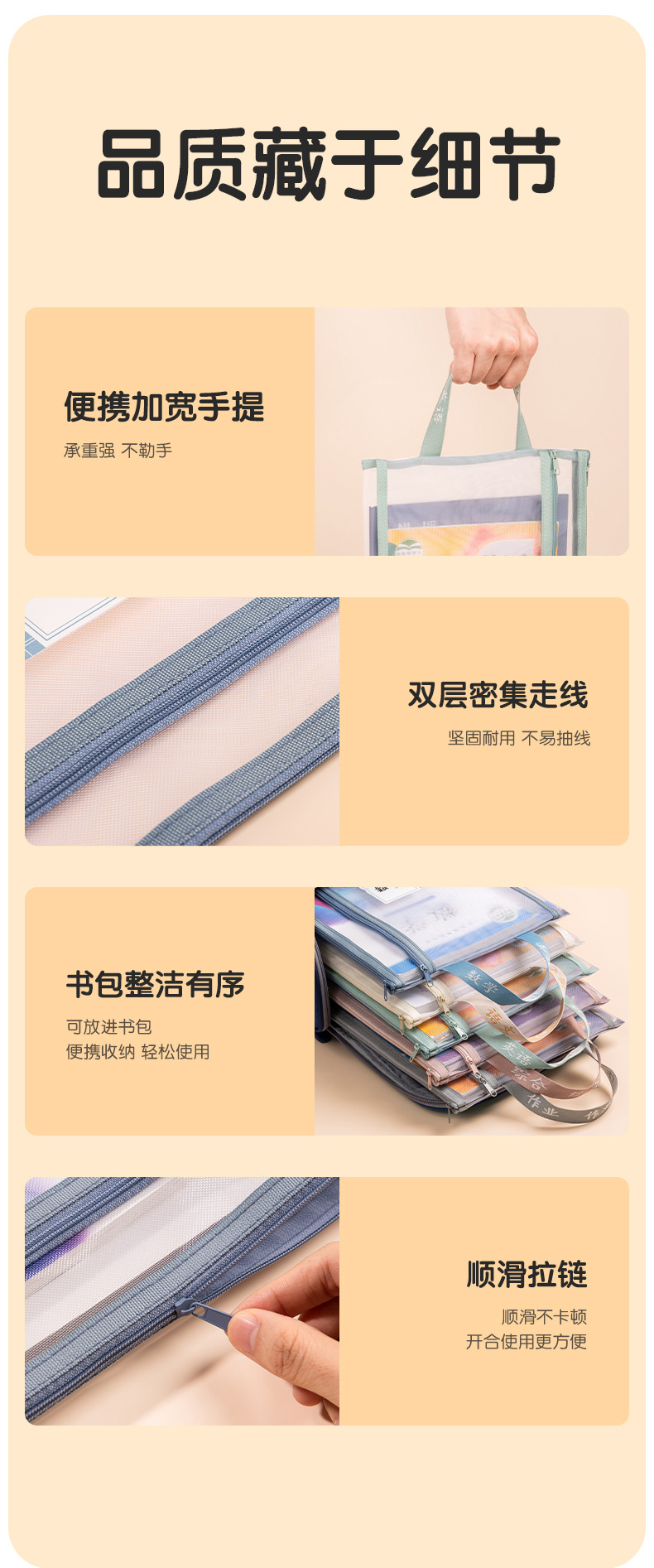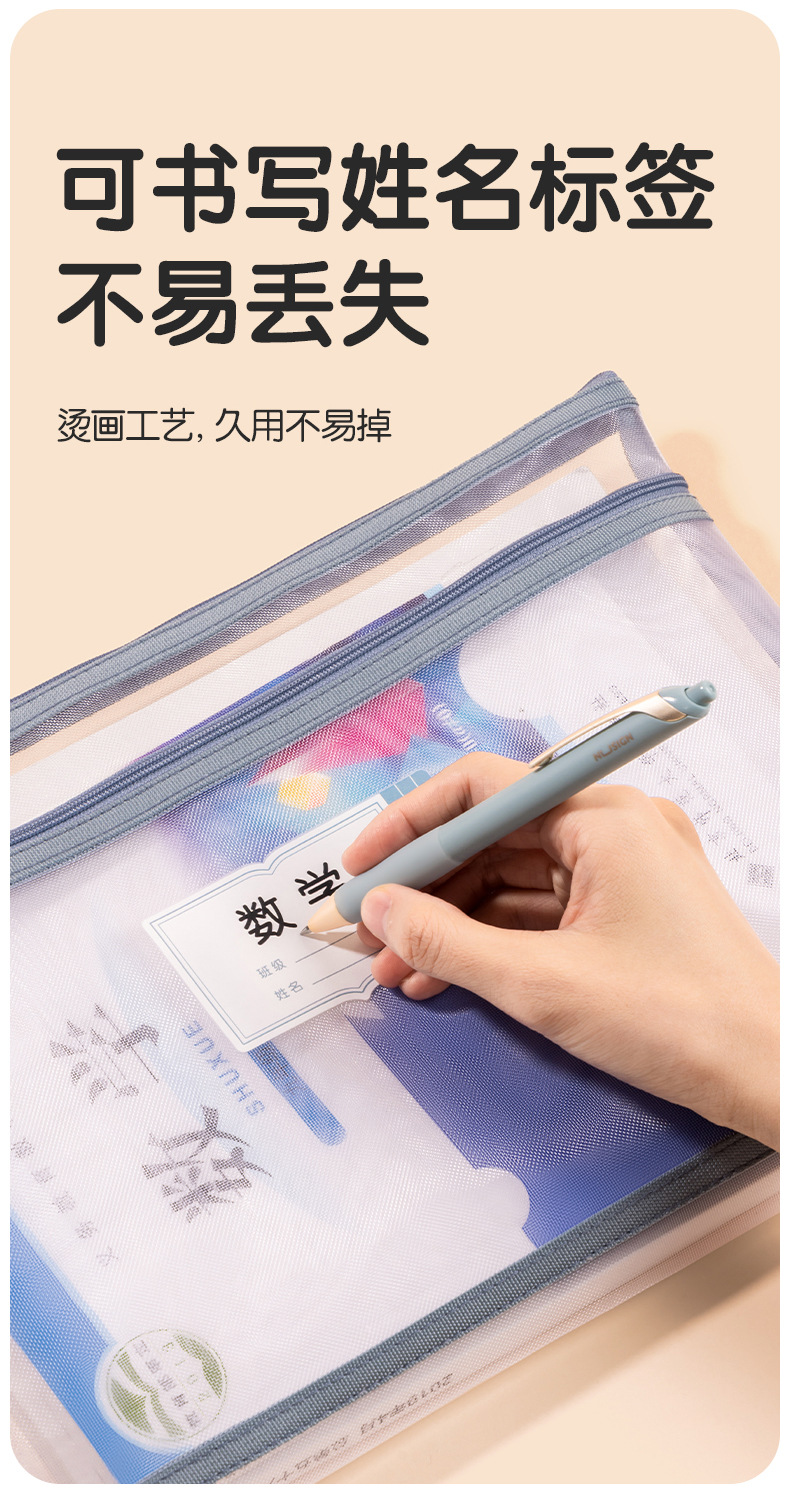 【科目分类好帮手!网纱拉链袋】得力学科科目分类文件袋小学生拉链式试卷双层收纳袋透明网纱袋子,一科一袋,提高学习效率。ry
