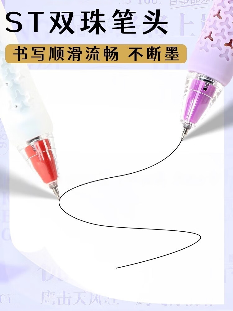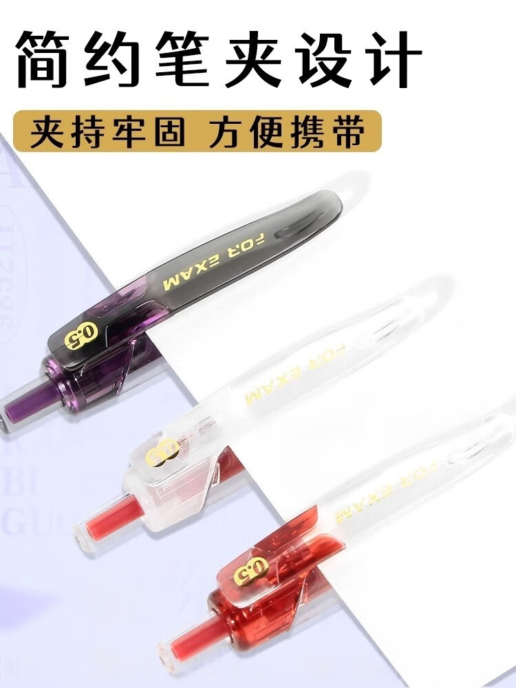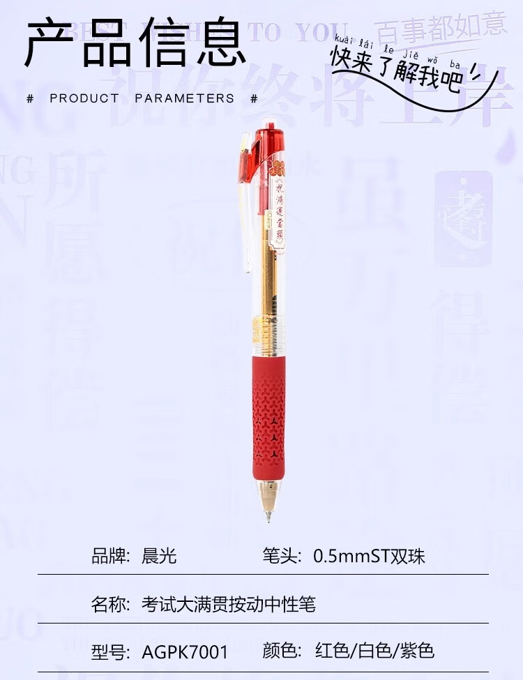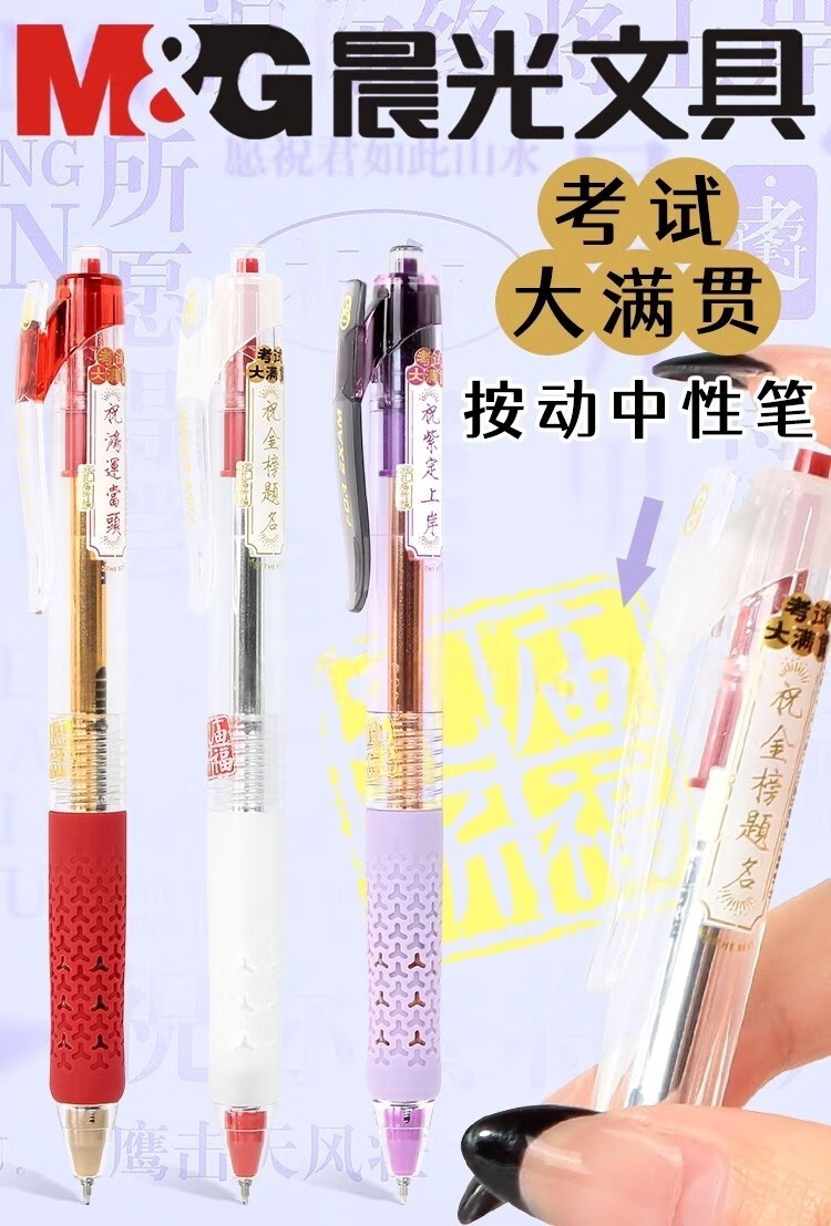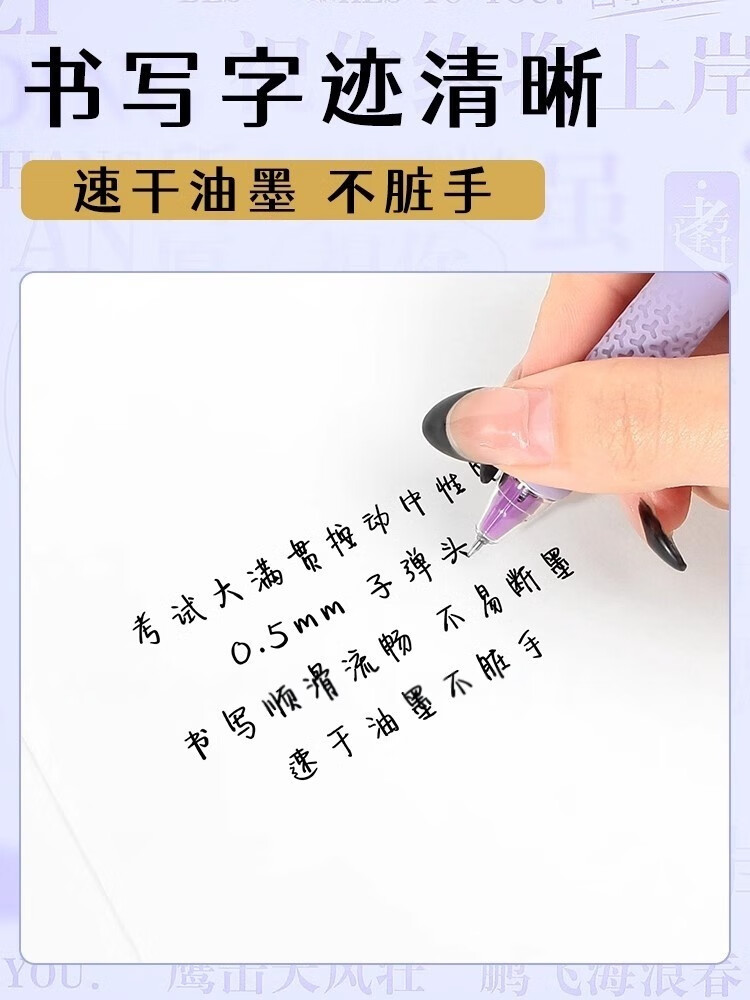 K7001晨光考试按动中性笔紫定上岸按动速干碳素黑笔双珠ST笔头学生0.5(笔杆颜色随机)