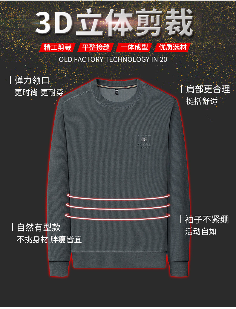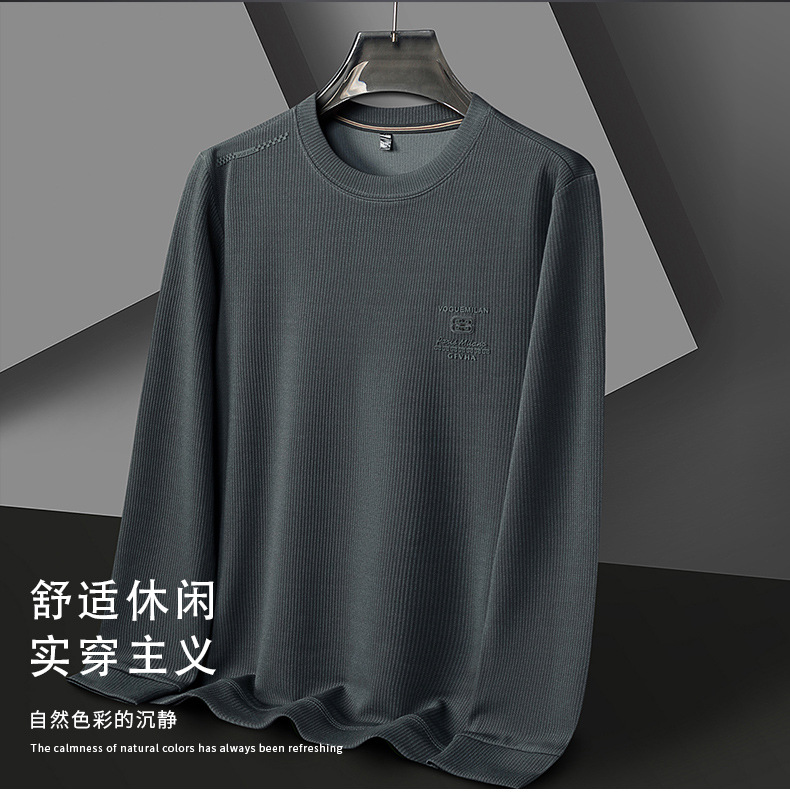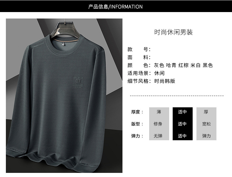 卫衣男圆领春秋新款高档中年休闲帅气宽松外穿上衣打底衫抖音爆款学生正装长袖体恤衫打底衫