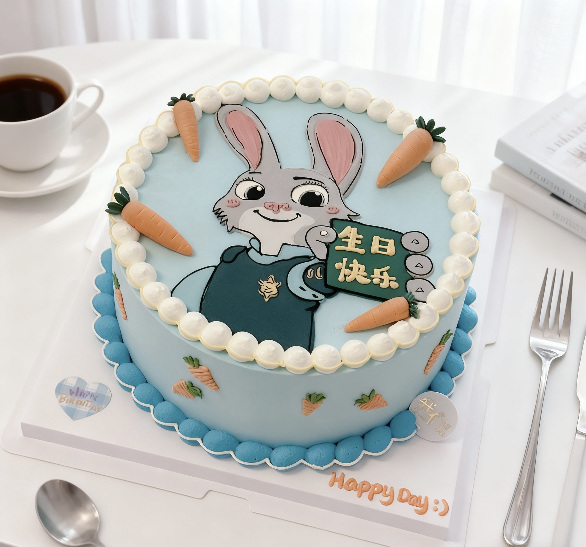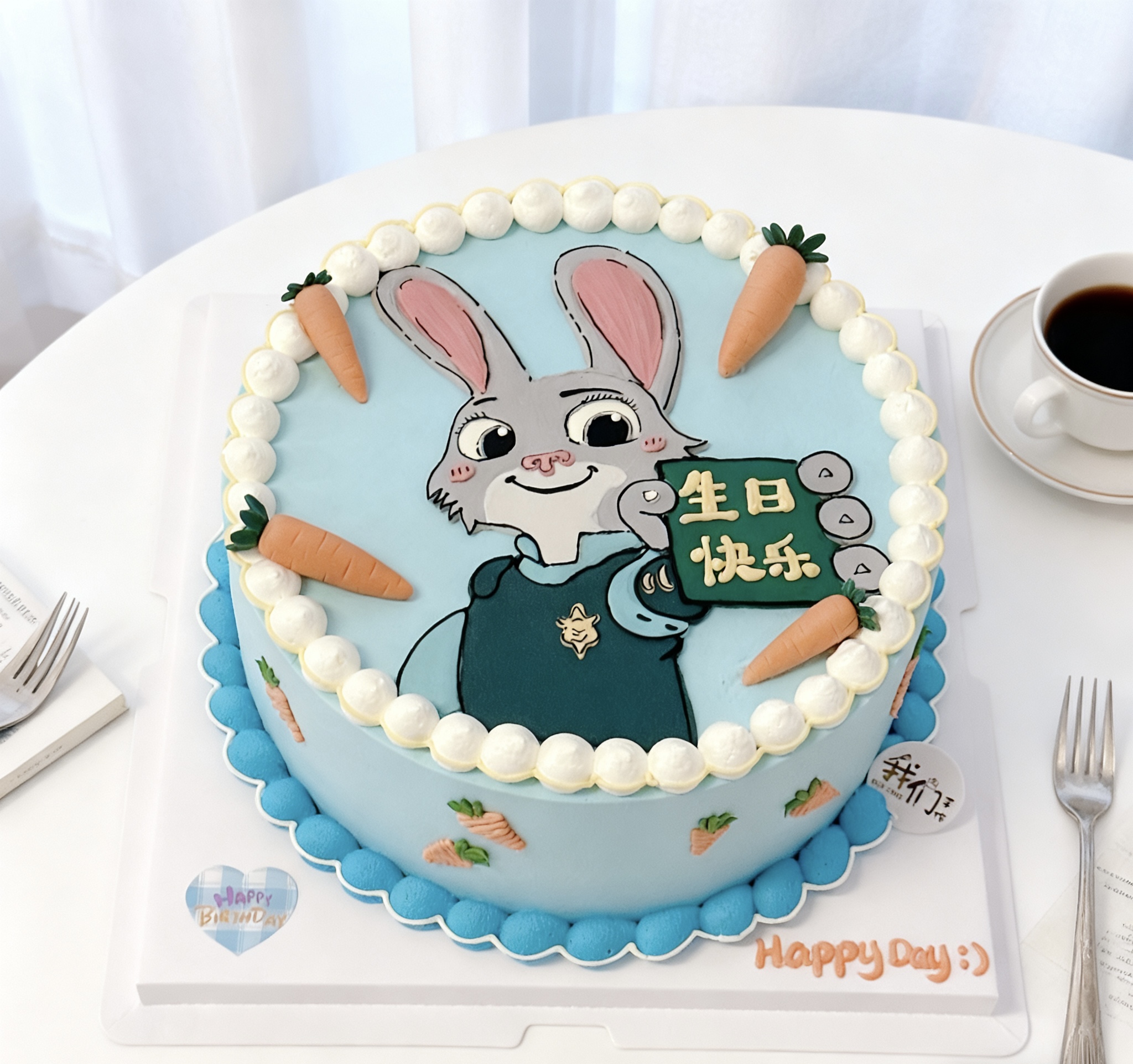 疯狂动物城朱迪警官兔子手绘卡通蛋糕-低糖处理无添加