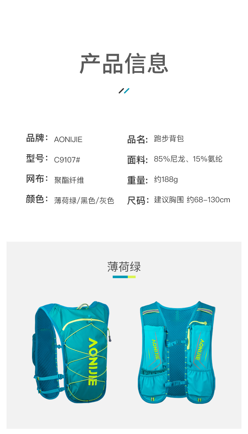 奥尼捷运动背包越野跑步背心骑行背包轻量透气跑步登山越野包5L骑行包 C9107