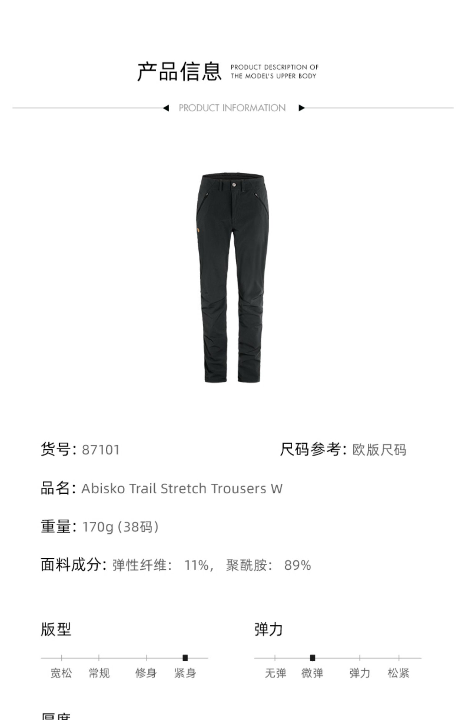 北极狐长裤女士户外弹性耐用松紧修身徒步露营 87101