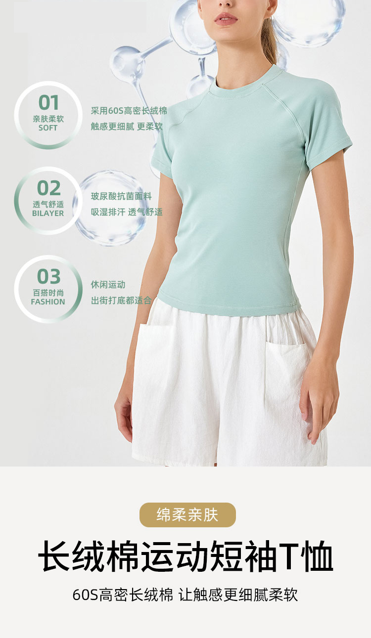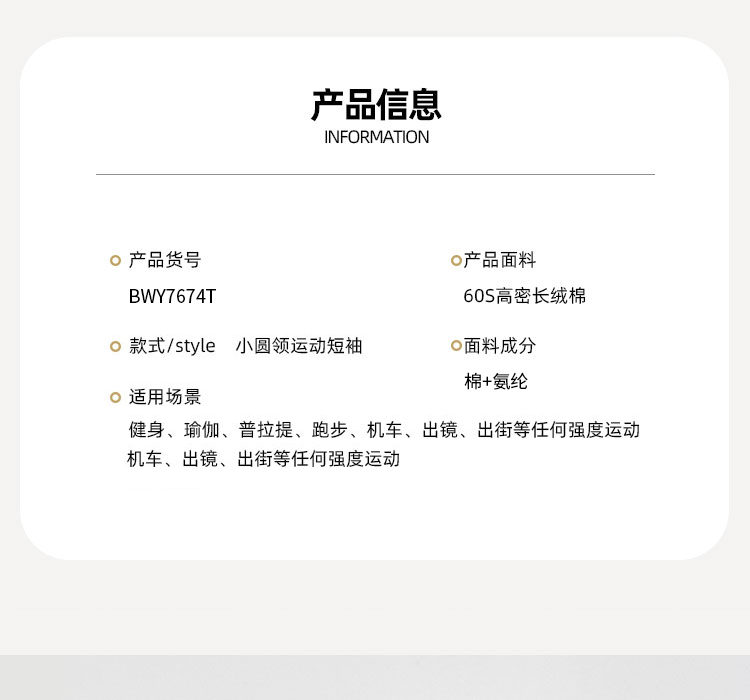 BWELL圆领长绒棉运动短袖T恤BWY7674T