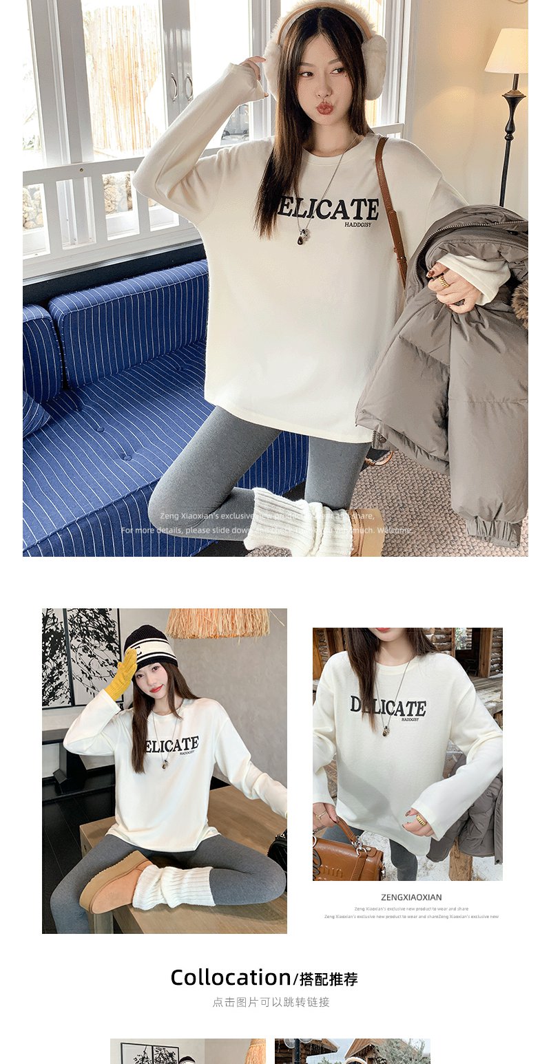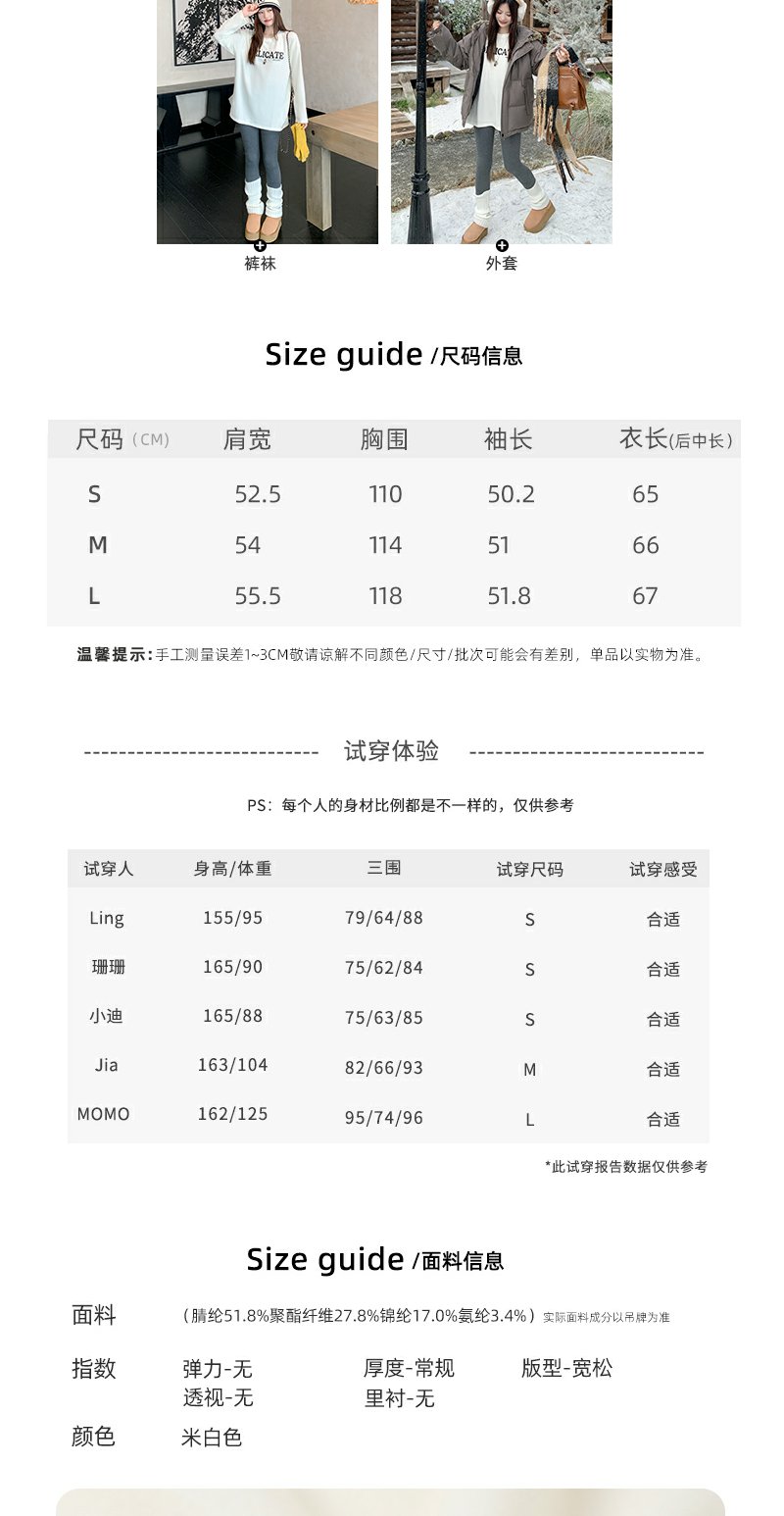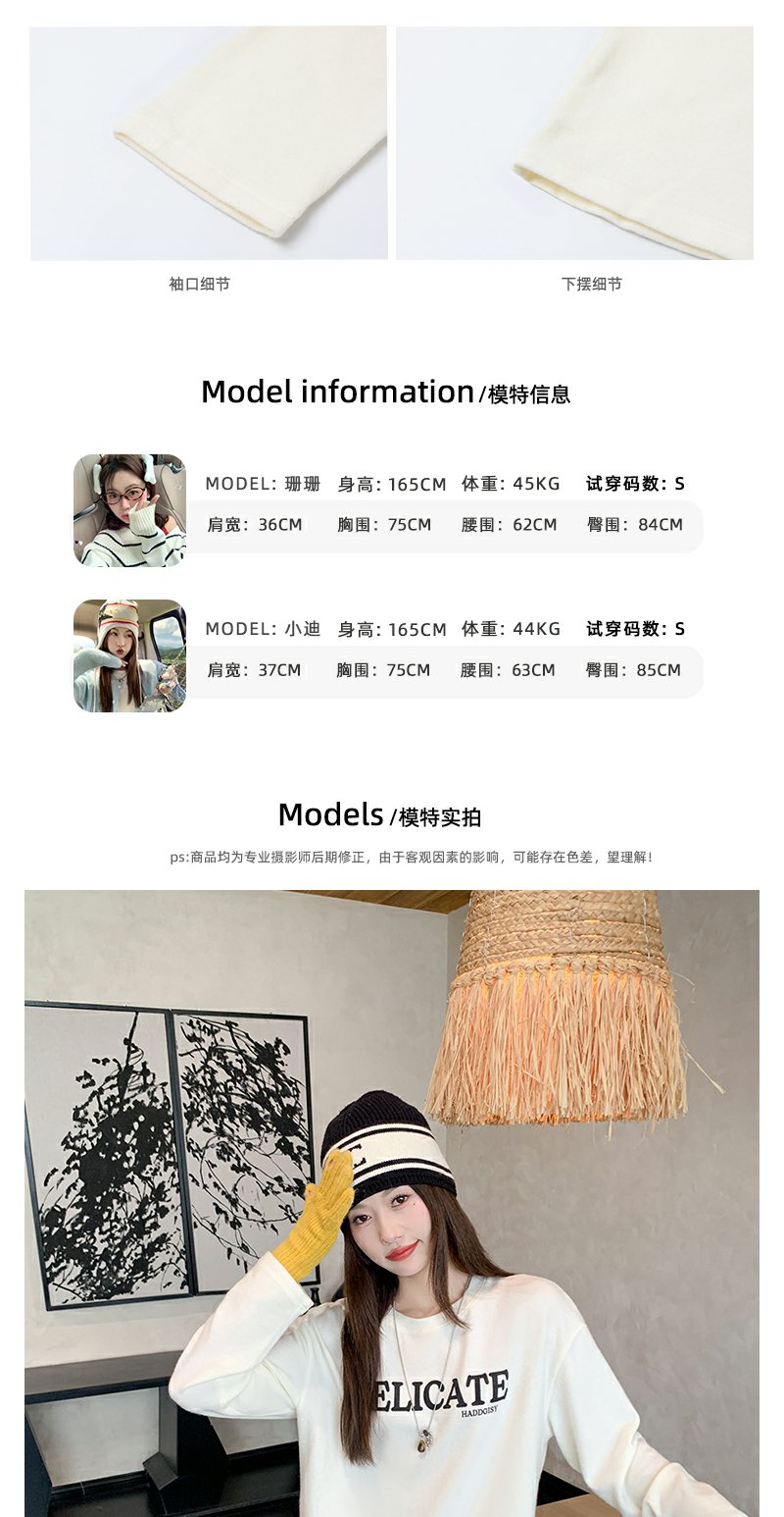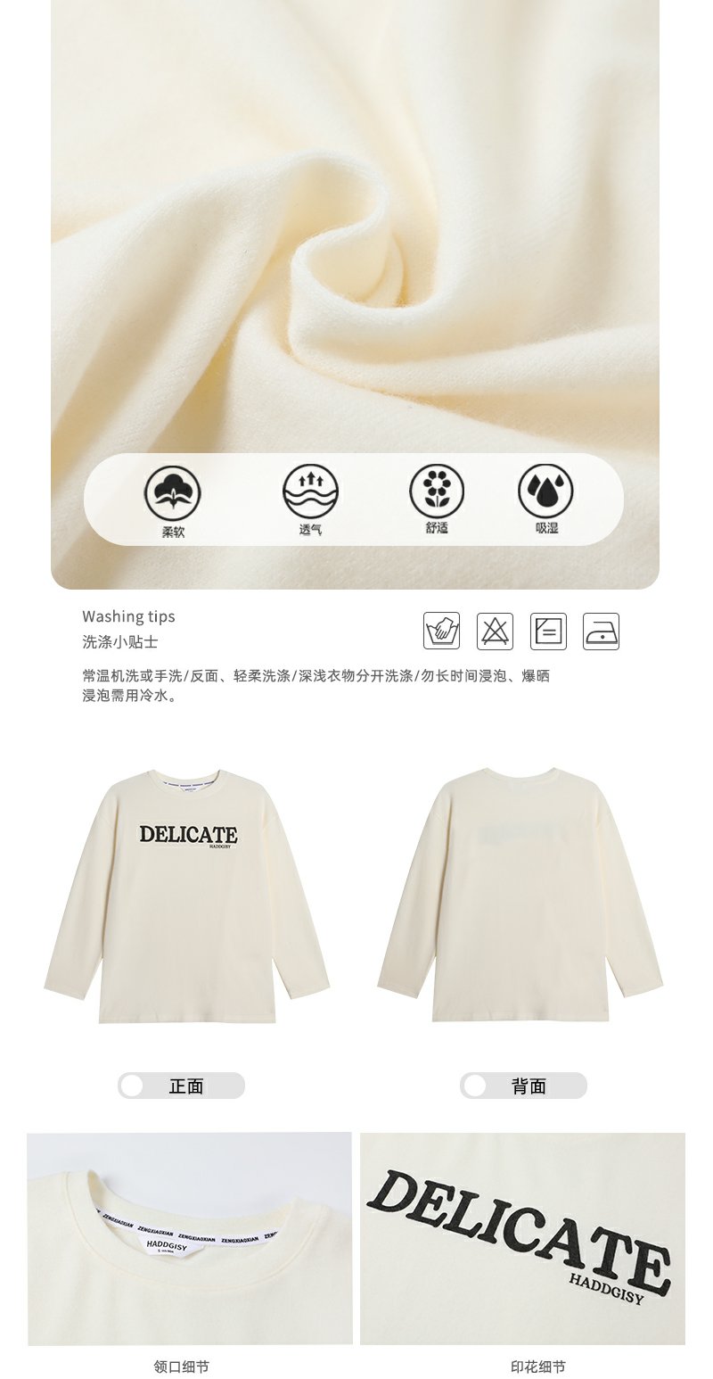 【149元任选2件】现货!米白色印花打底t恤内搭单穿长袖