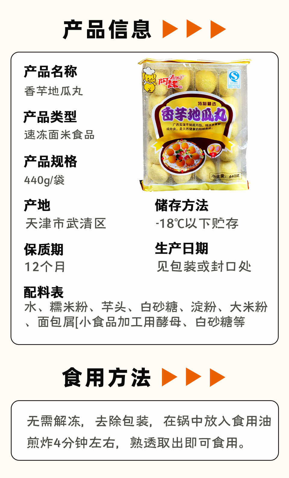 【会员专享】阿诺香芋地瓜丸440g/袋(20个)10袋/件 10件/套