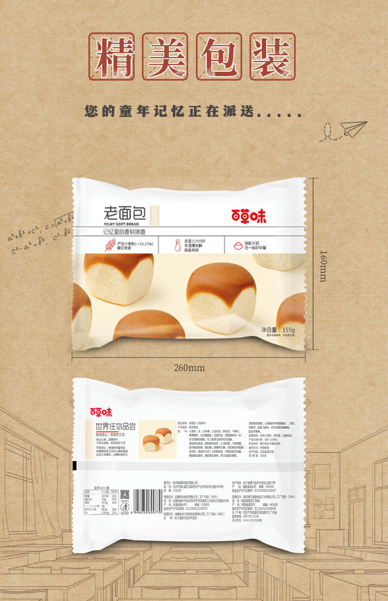 百草味豆沙蛋黄酥100g百草味精致猪肉脯60g百草味老面包155g百草味团子抹茶味120g百草味岩烧乳酪面包200g