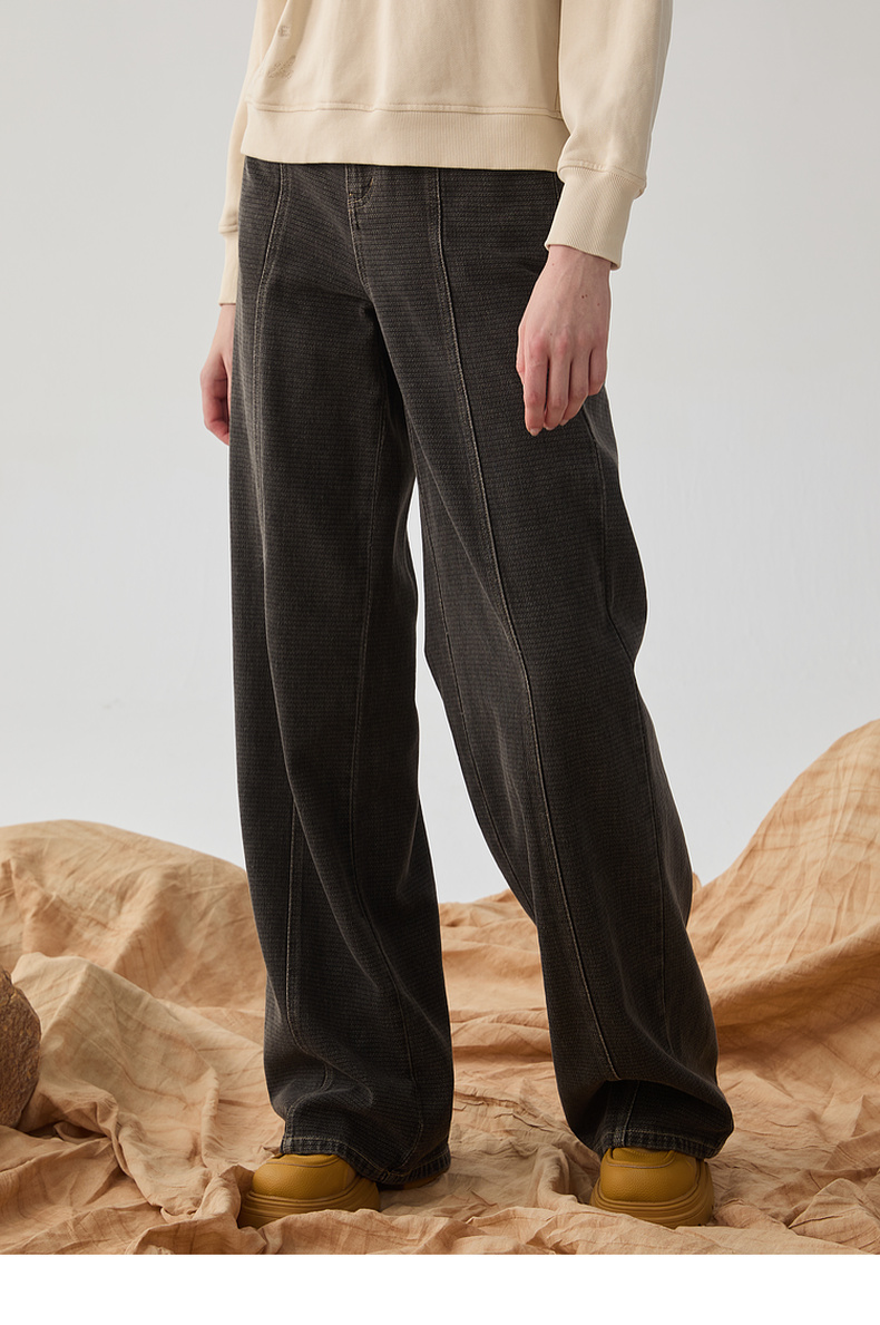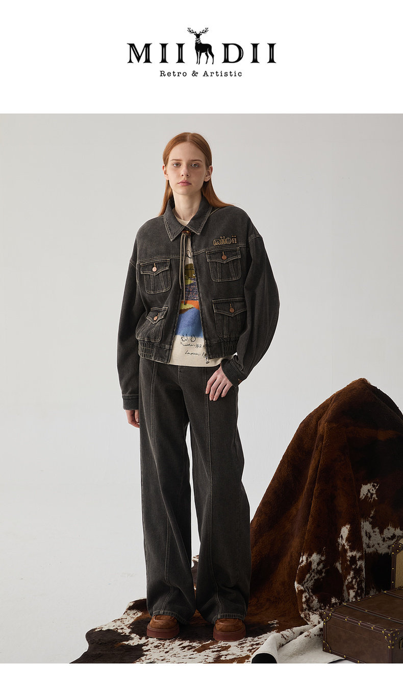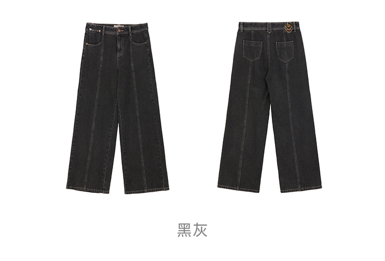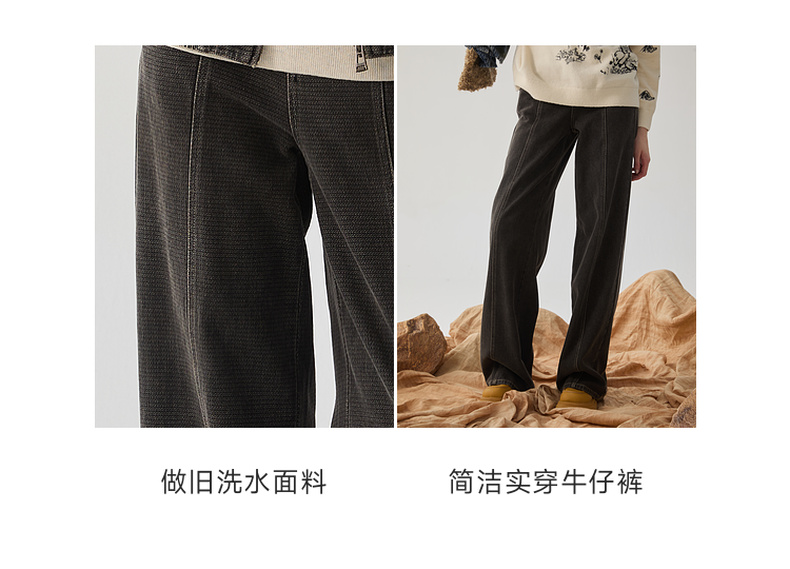 谜底牛仔阔腿裤女2024冬季新品复古风高腰随性宽松长裤244MK1523