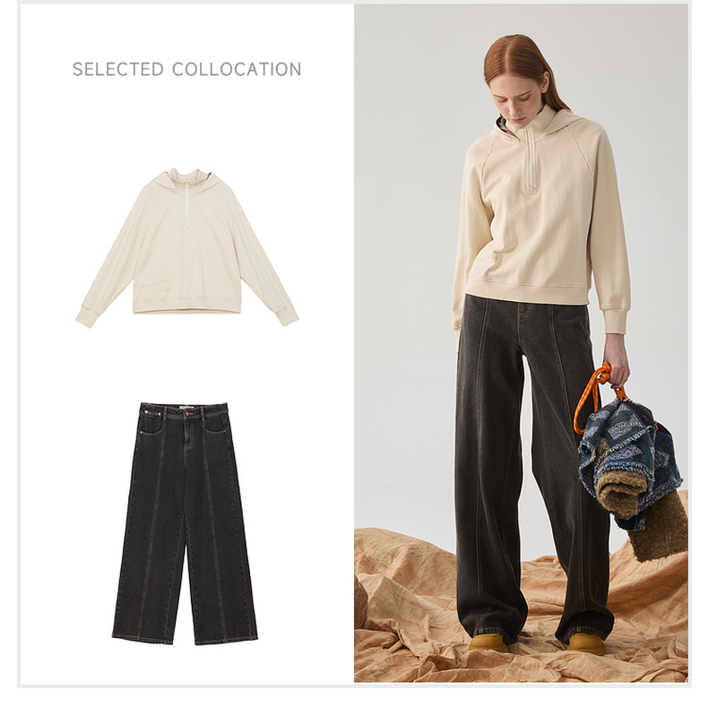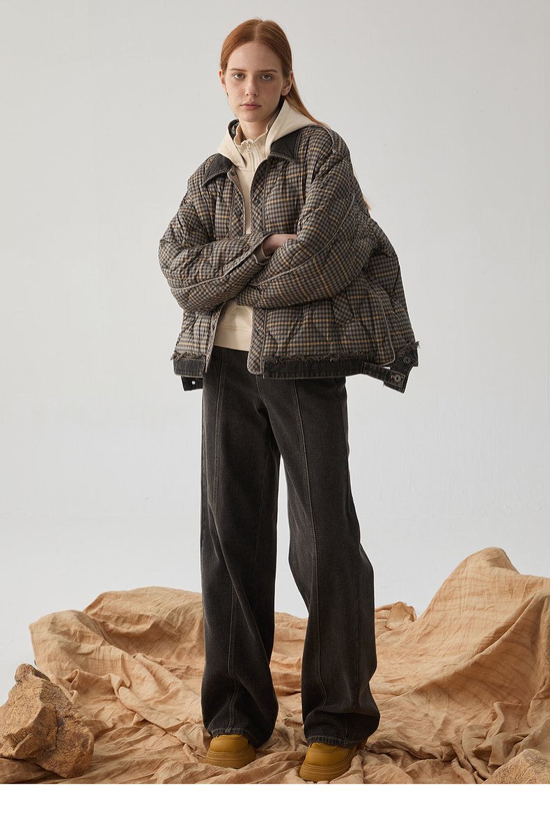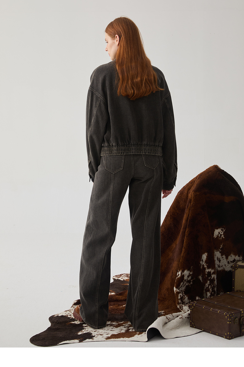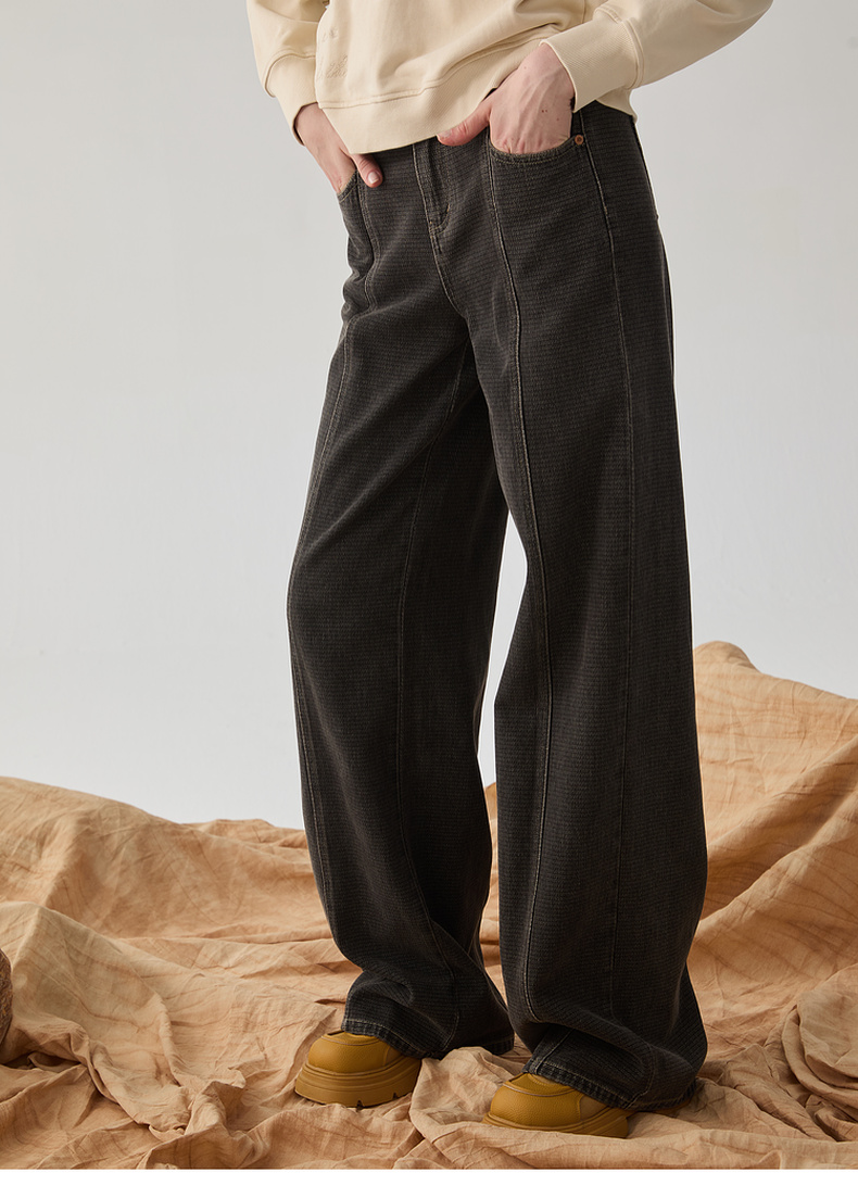 谜底牛仔阔腿裤女2024冬季新品复古风高腰随性宽松长裤244MK1523