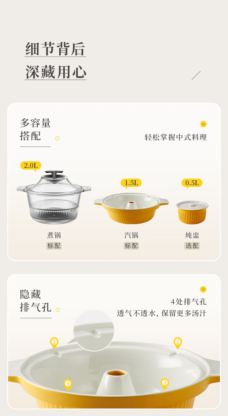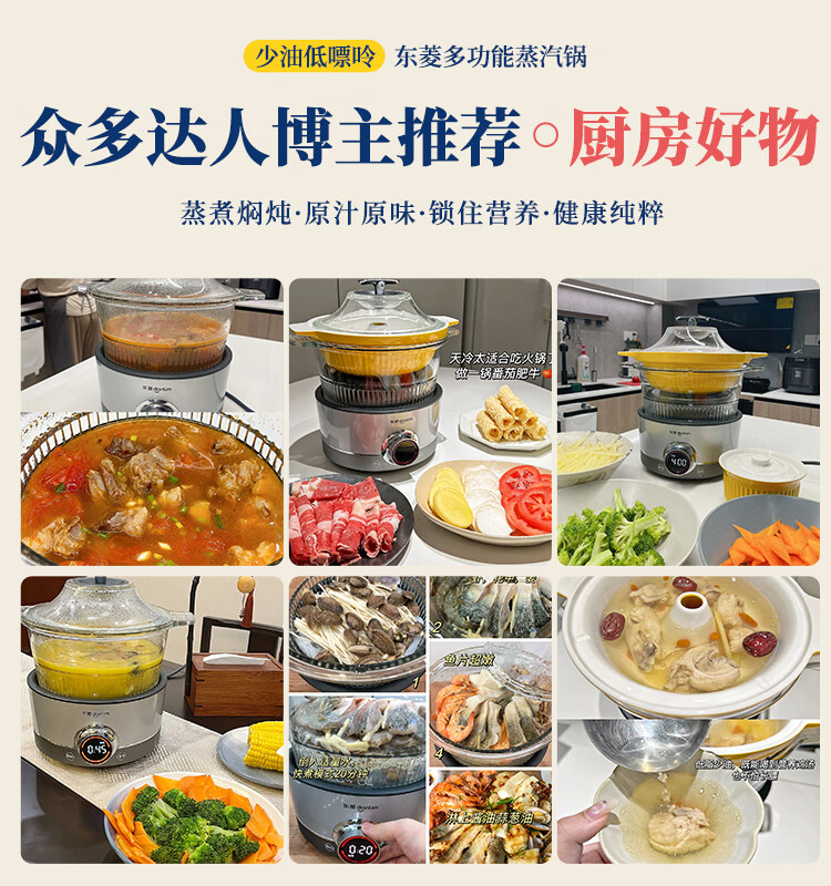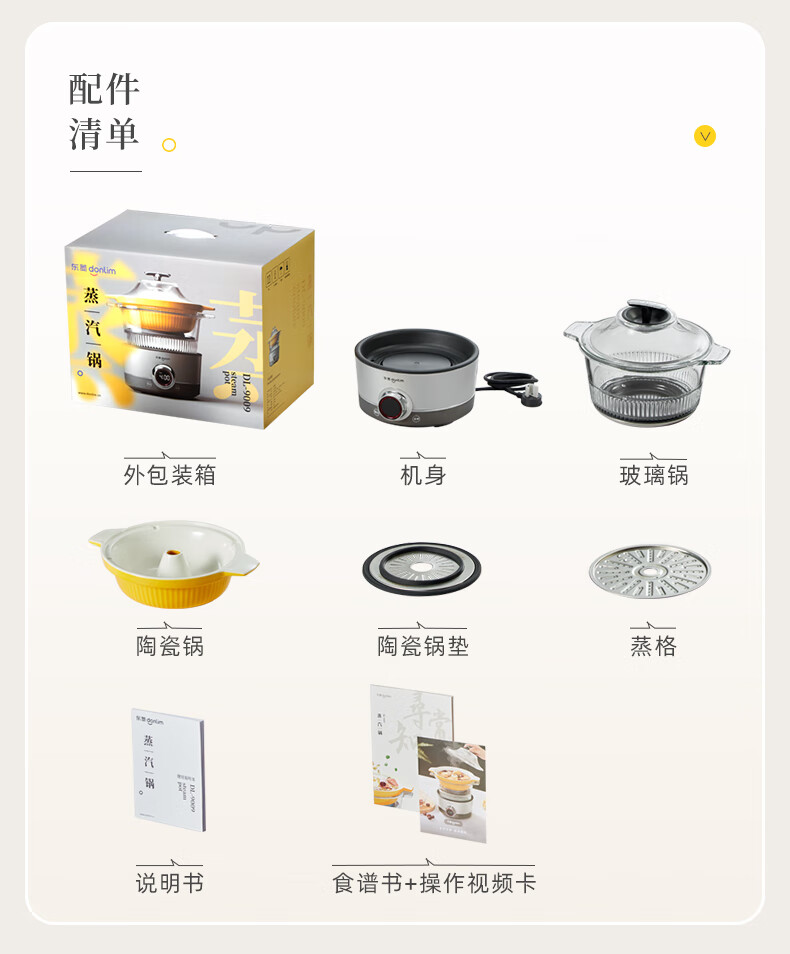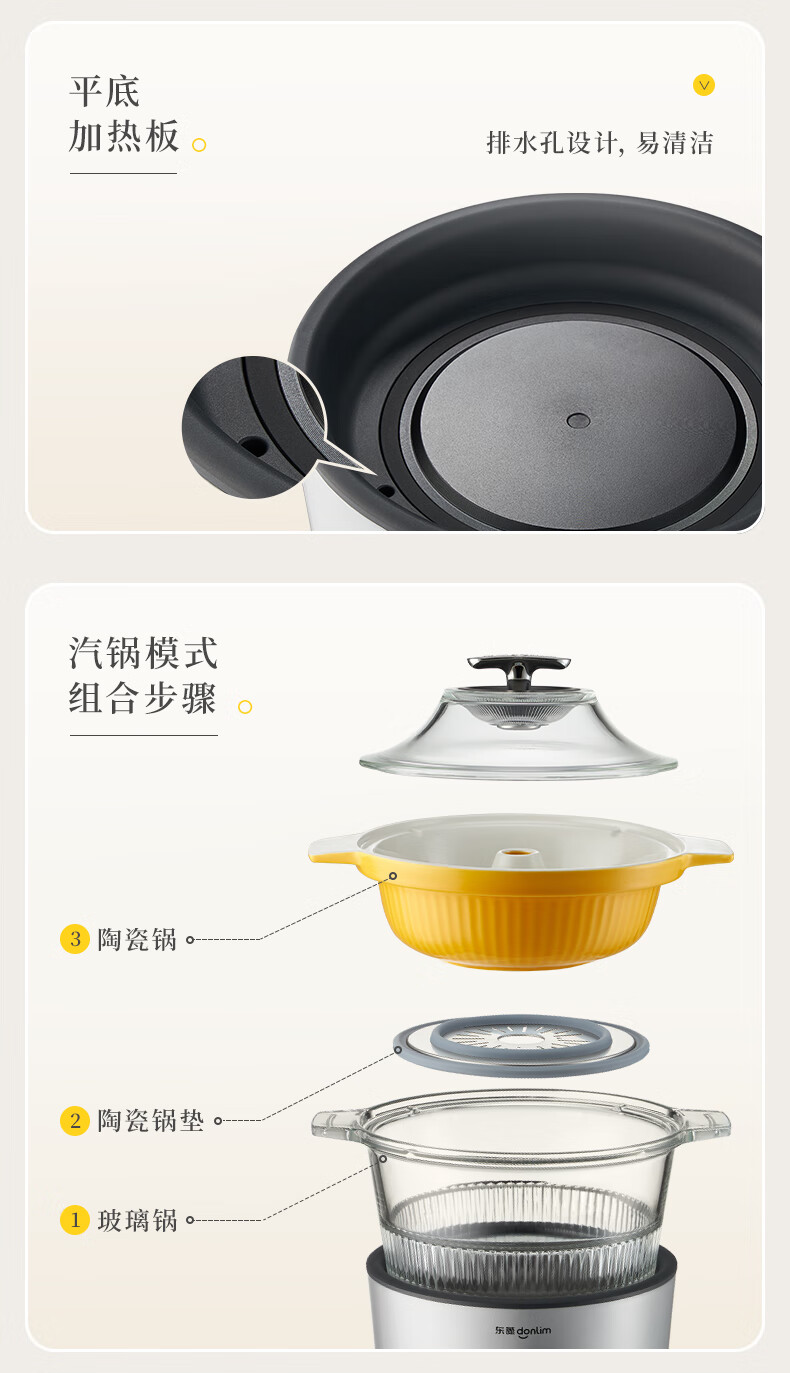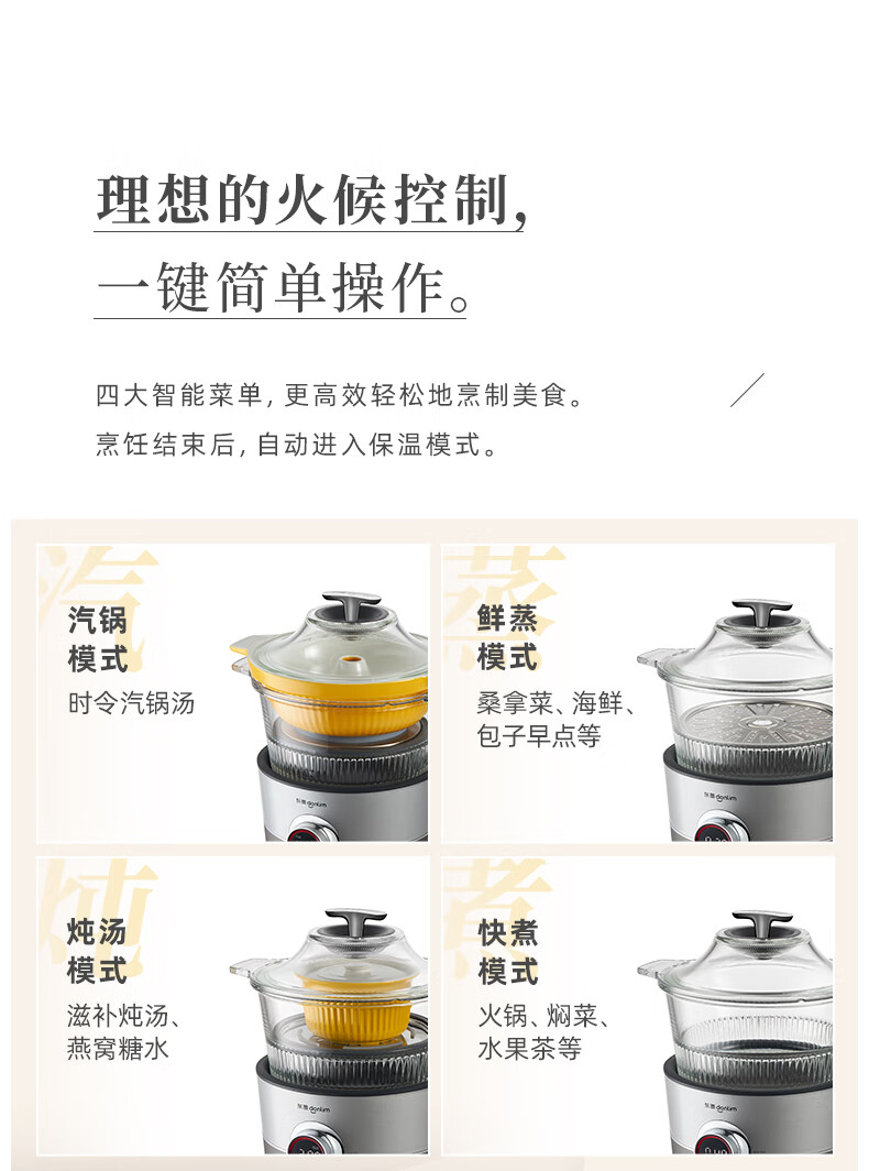 东菱(Donlim) 蒸汽锅电炖锅汽锅家用电蒸锅多功能蒸炖锅隔水炖盅 【非质量问题不支持7天无理由售后,介意慎拍!】汽锅(1.5L)+煮锅(2.0L) DL-9009