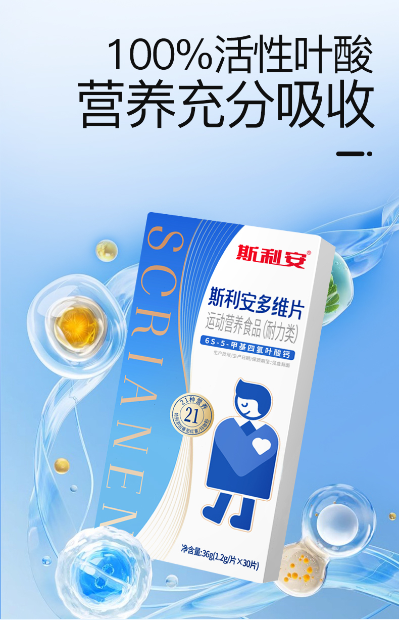 分销-斯利安活性男士叶酸多维片30片