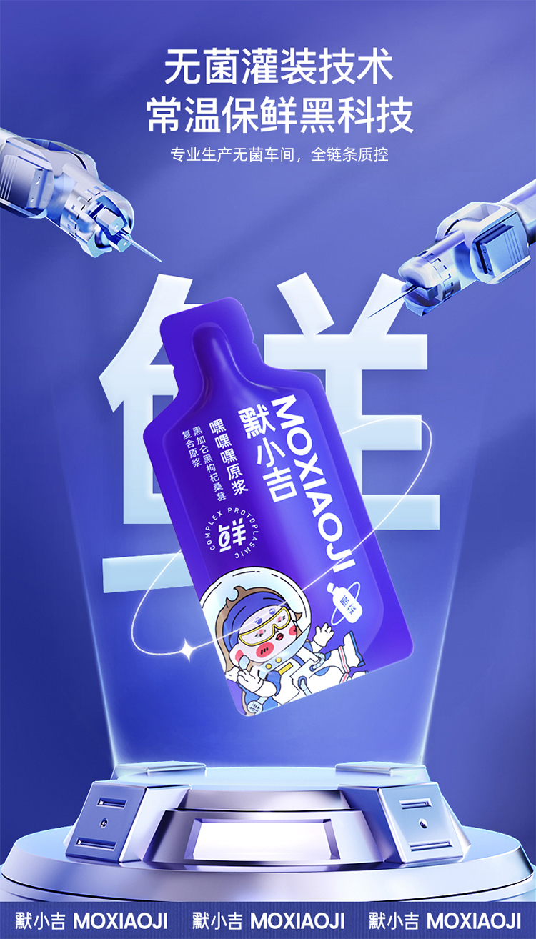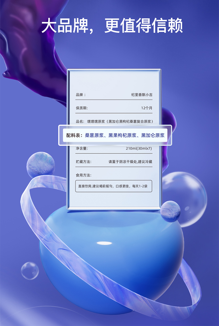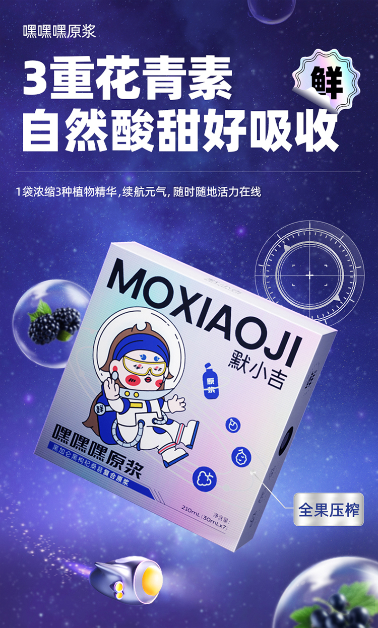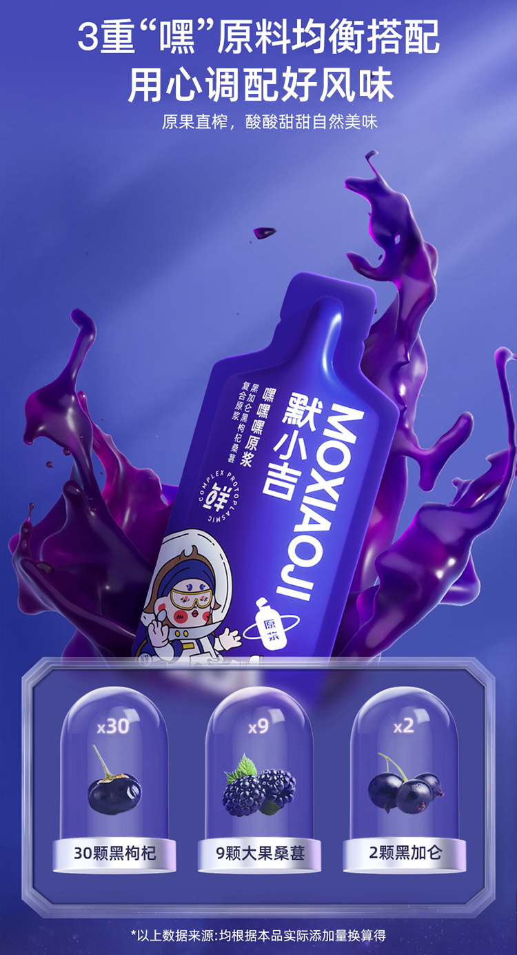 默小吉210ml嘿嘿嘿复合原浆,黑枸杞、黑桑葚、黑加仑组合,一袋3重花青素,以嘿 养白