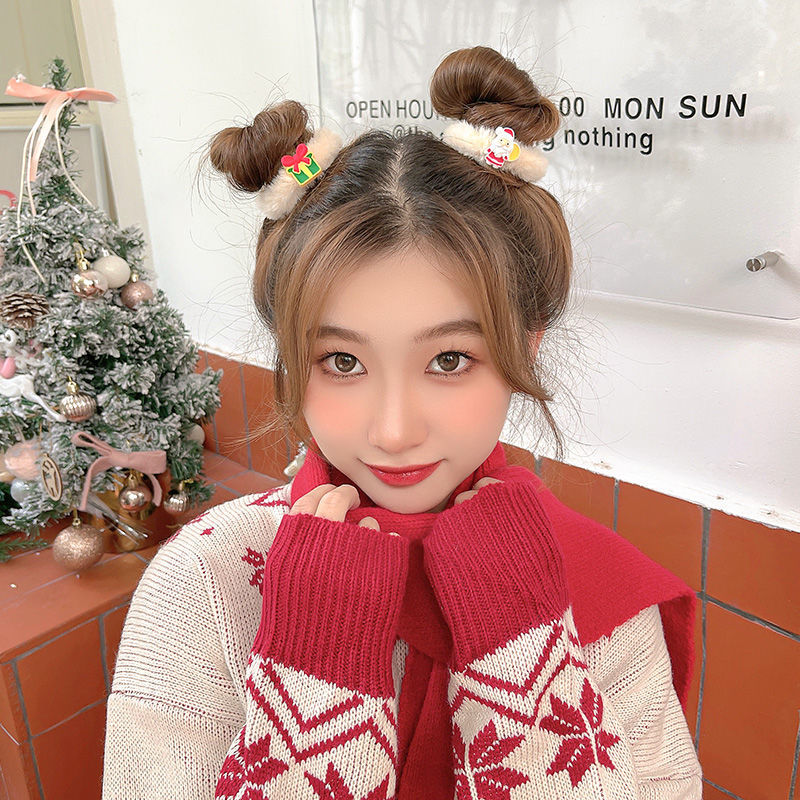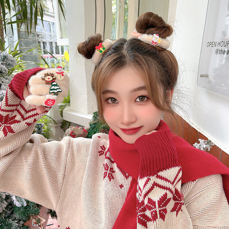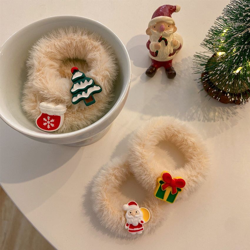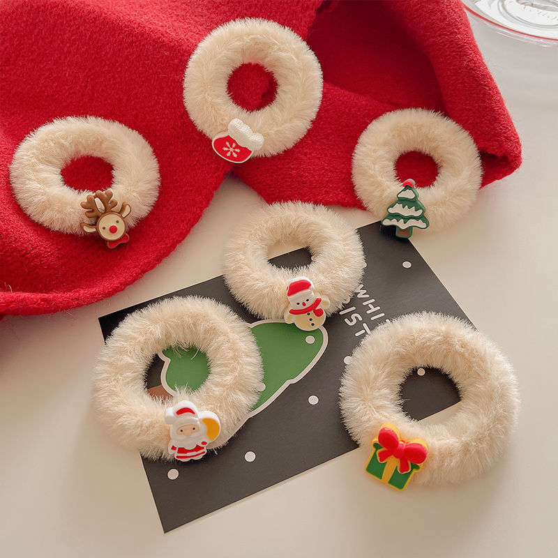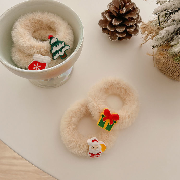 毛茸茸冬日可爱圣诞毛绒发圈圣诞节发饰网红发绳卡通麋鹿头绳圣诞小礼物gjl22