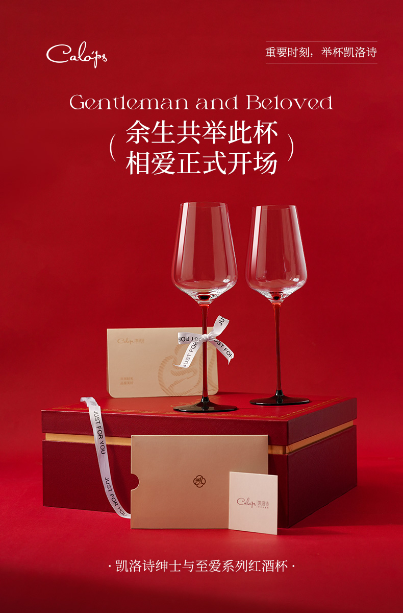 凯洛诗新品高颜值绅士与至爱红杆双支红酒杯手工高端送礼结婚礼盒凯洛诗绅士与挚爱红杆红酒对杯