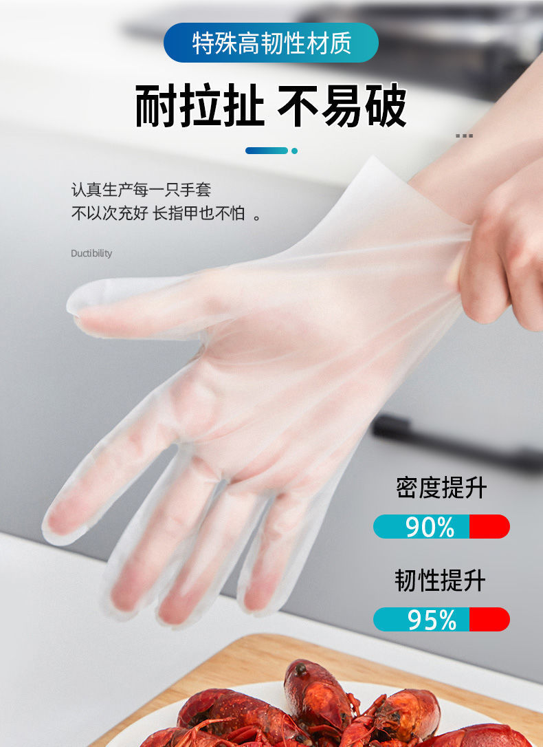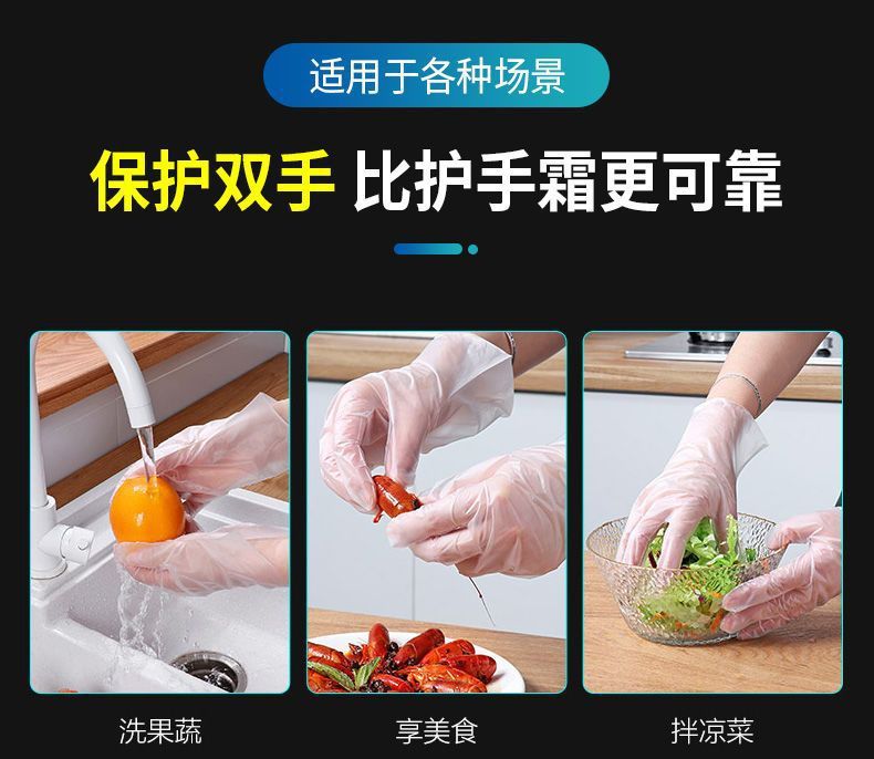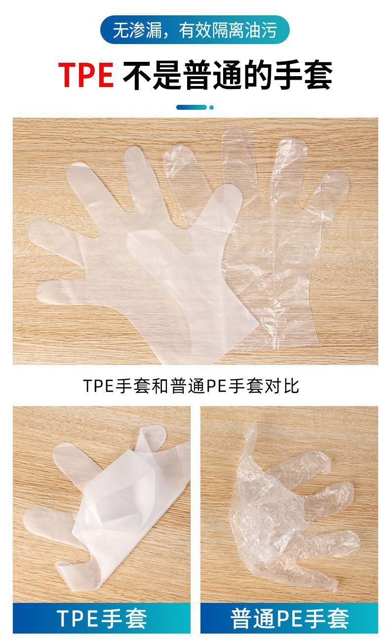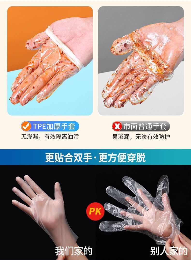 「拍1发2!9.9元两包200只」一次性TPE手套加厚耐用PET食品家用餐饮用厨房用品烘焙洗手套