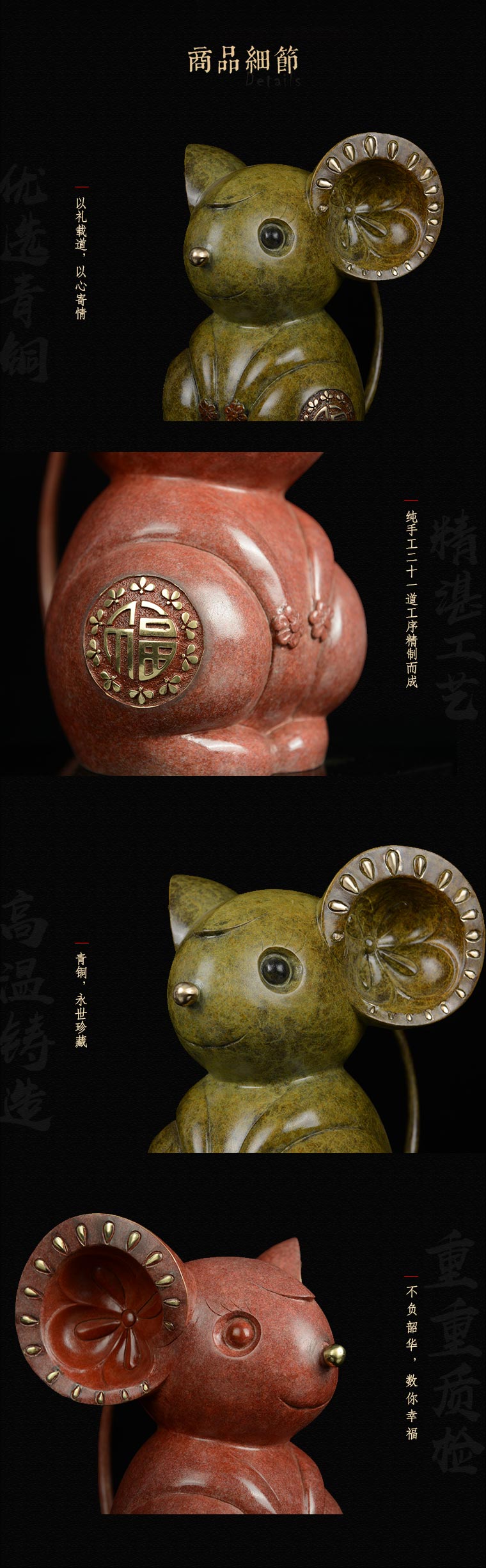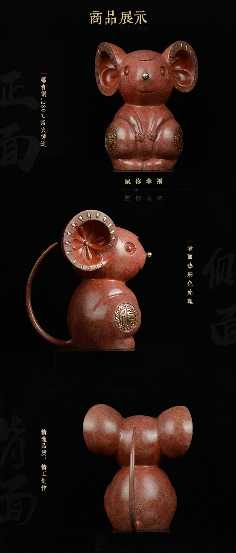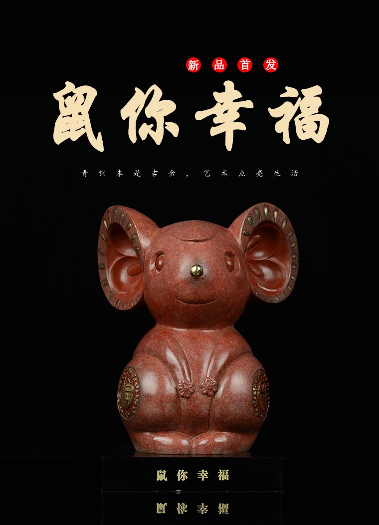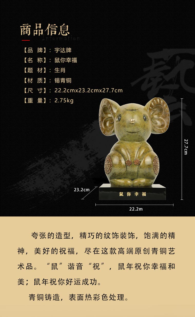 宇达青铜全铜鼠摆件《属你幸福》鼠年新品 家居 艺术装饰摆件 高27.7cm