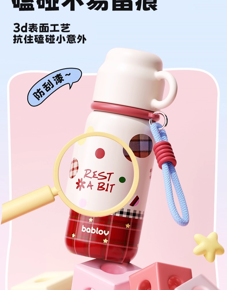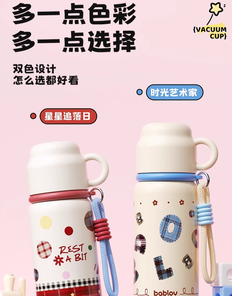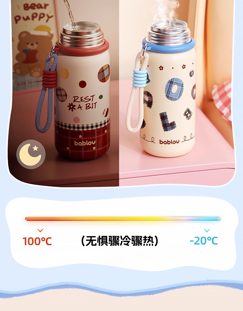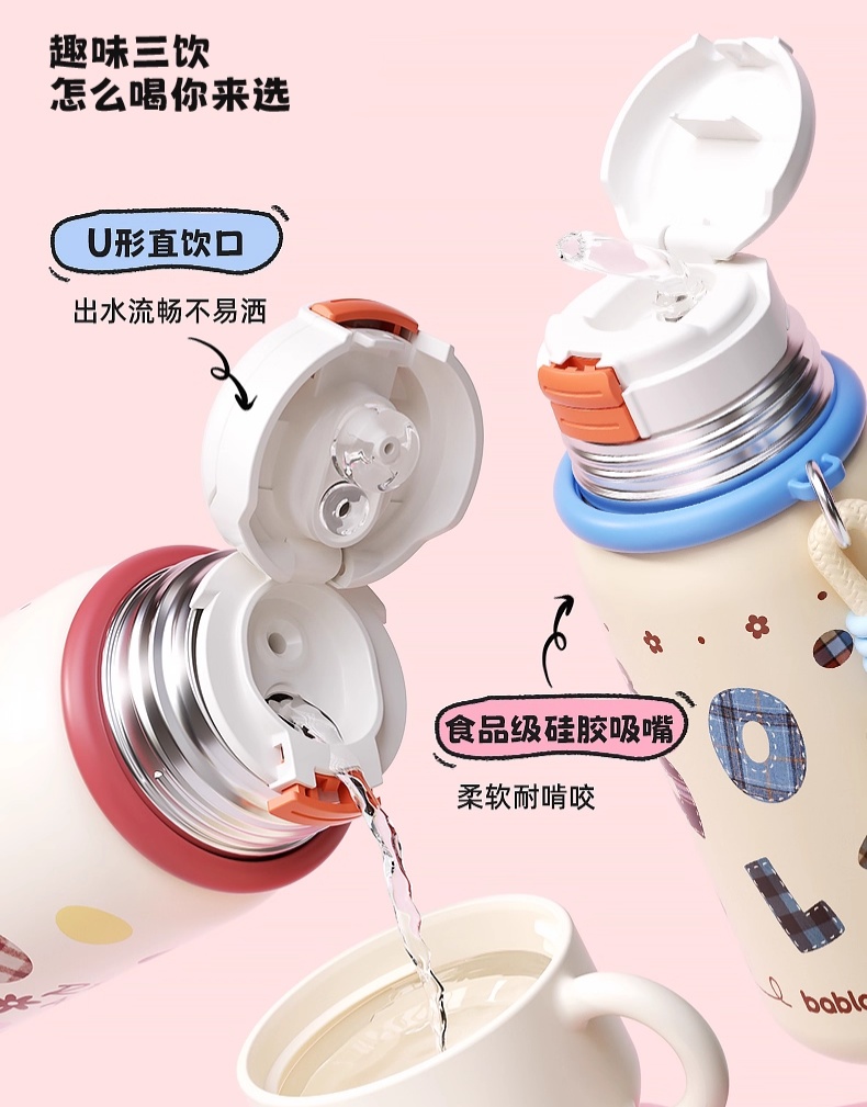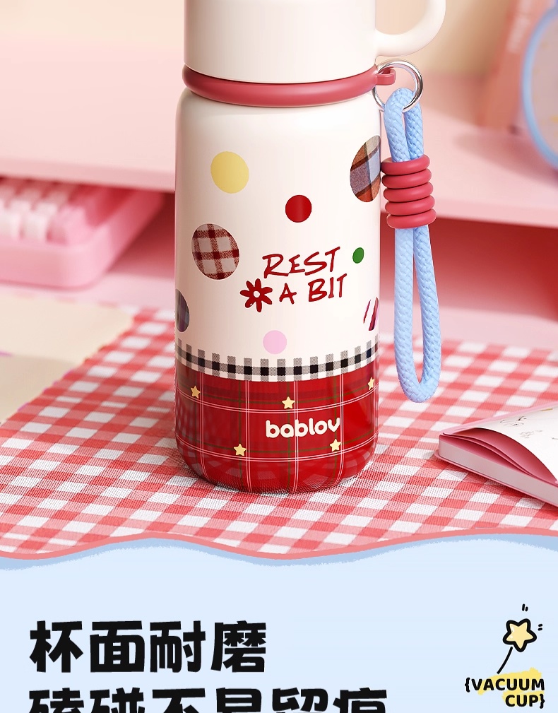 bablov儿童保温杯女生高颜值2025新款水杯吸管杯学生上学专用杯子
