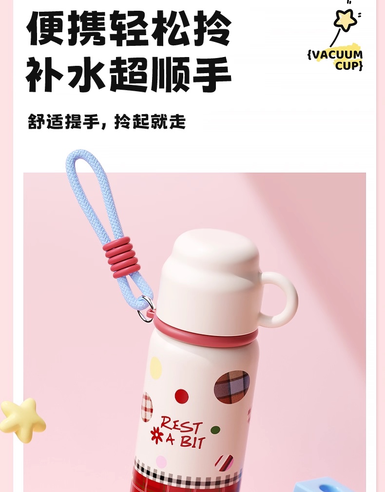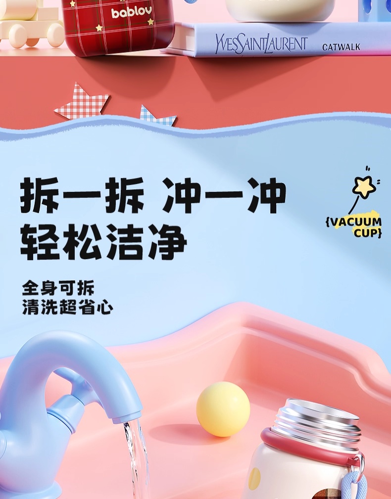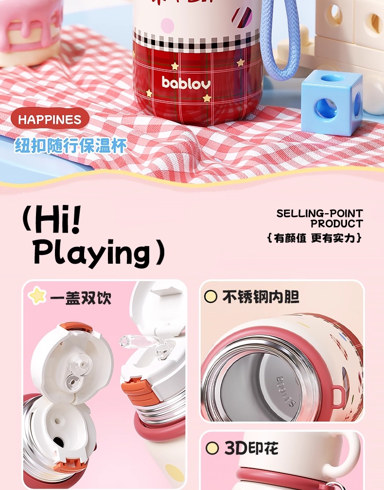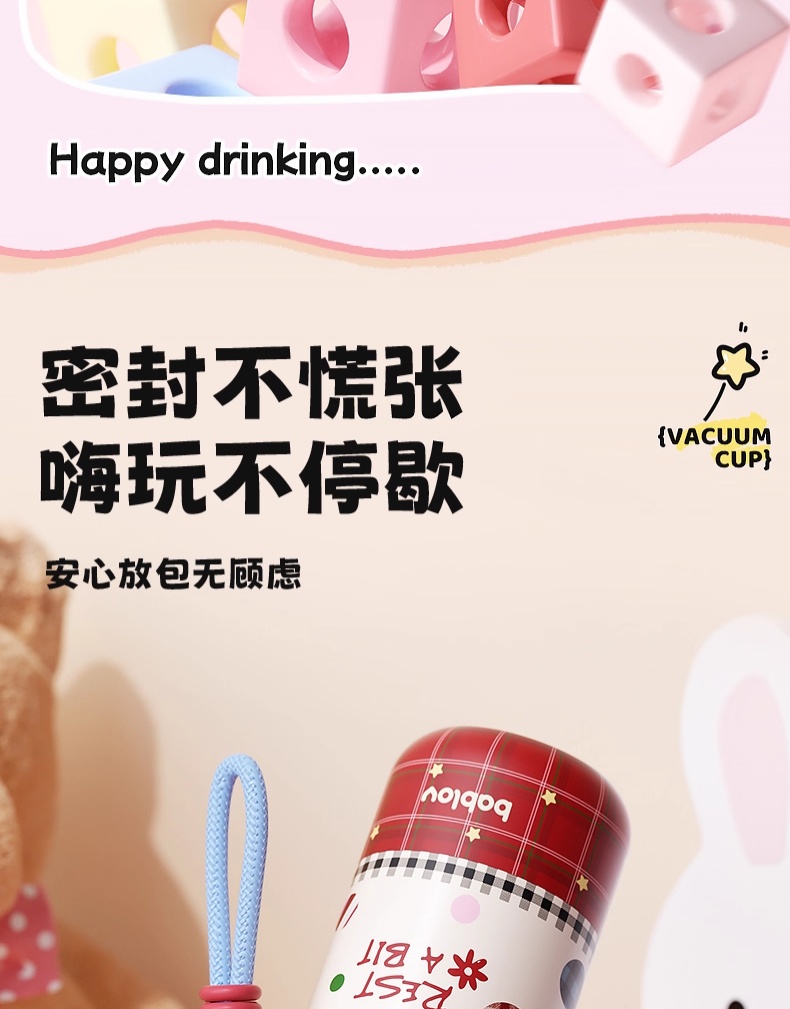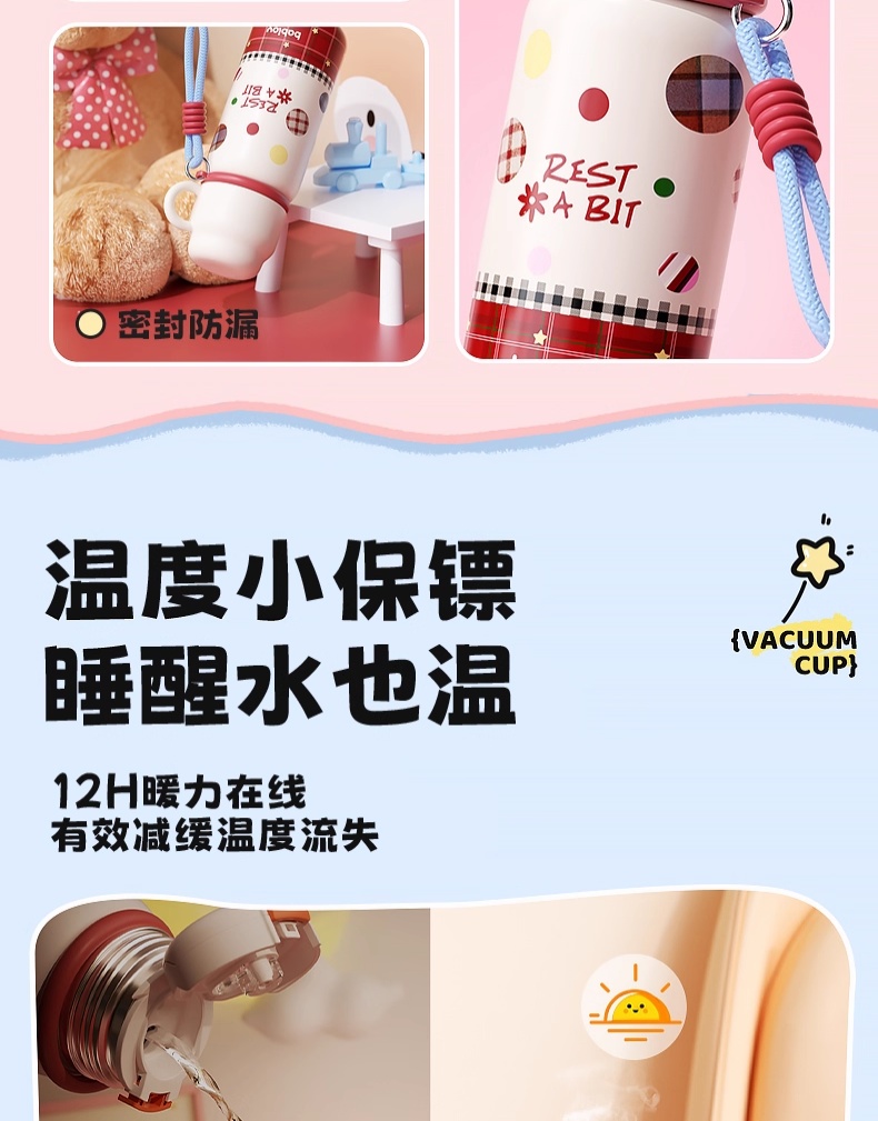 bablov儿童保温杯女生高颜值2025新款水杯吸管杯学生上学专用杯子