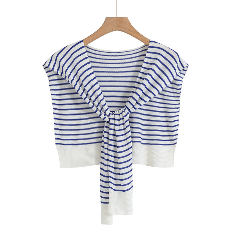 薄款时尚条纹针织百搭坎肩搭肩