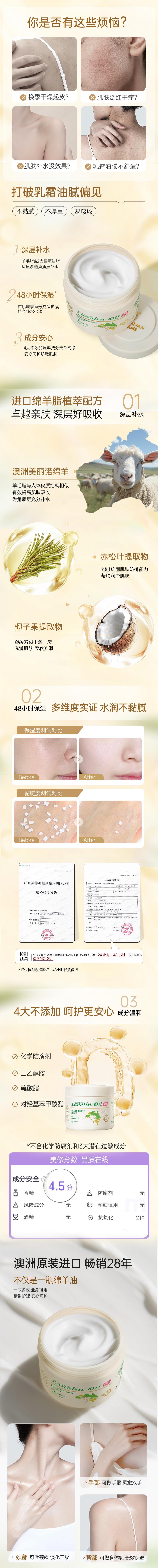 【中欧班列精选】新三代澳洲澳芝曼绵羊脂滋润维E霜(温和新配方)200g/盒