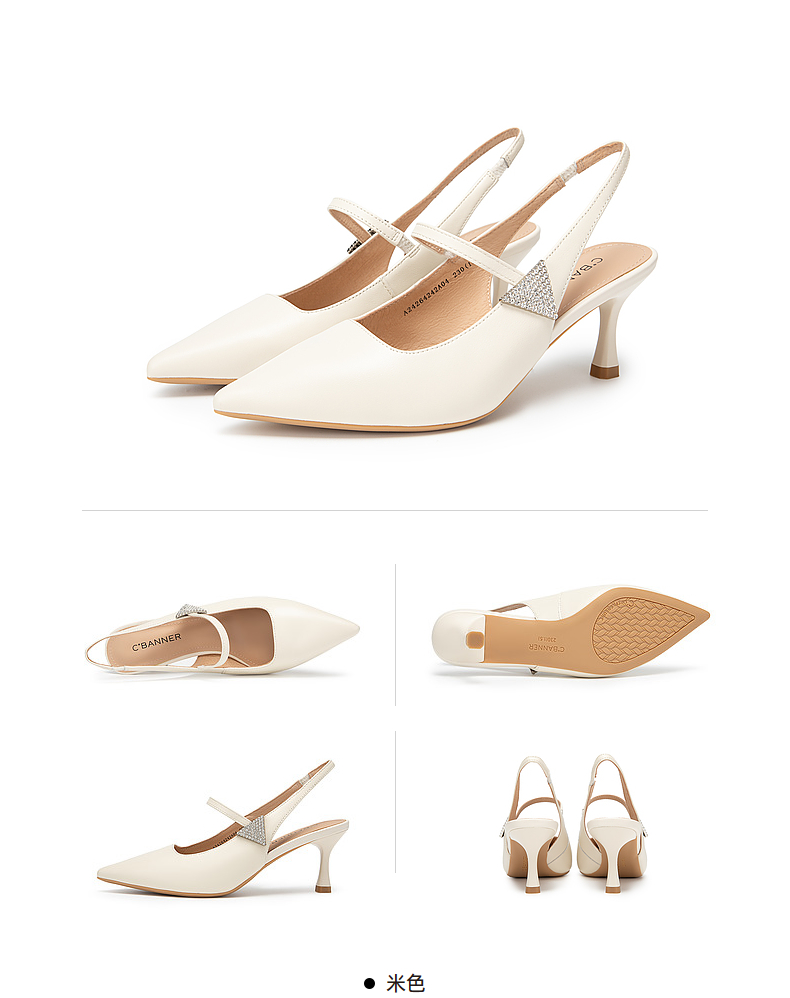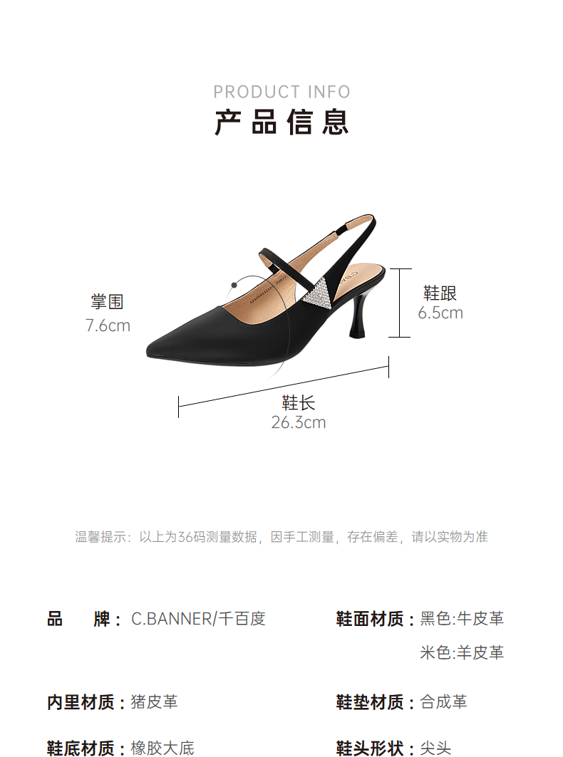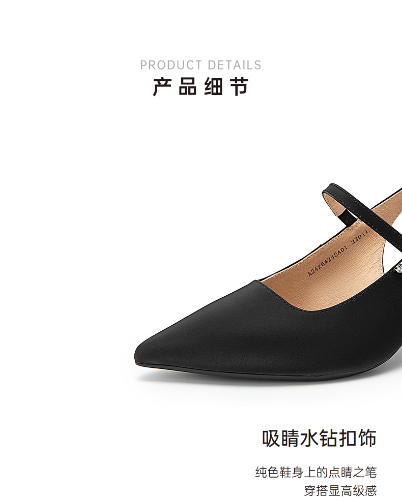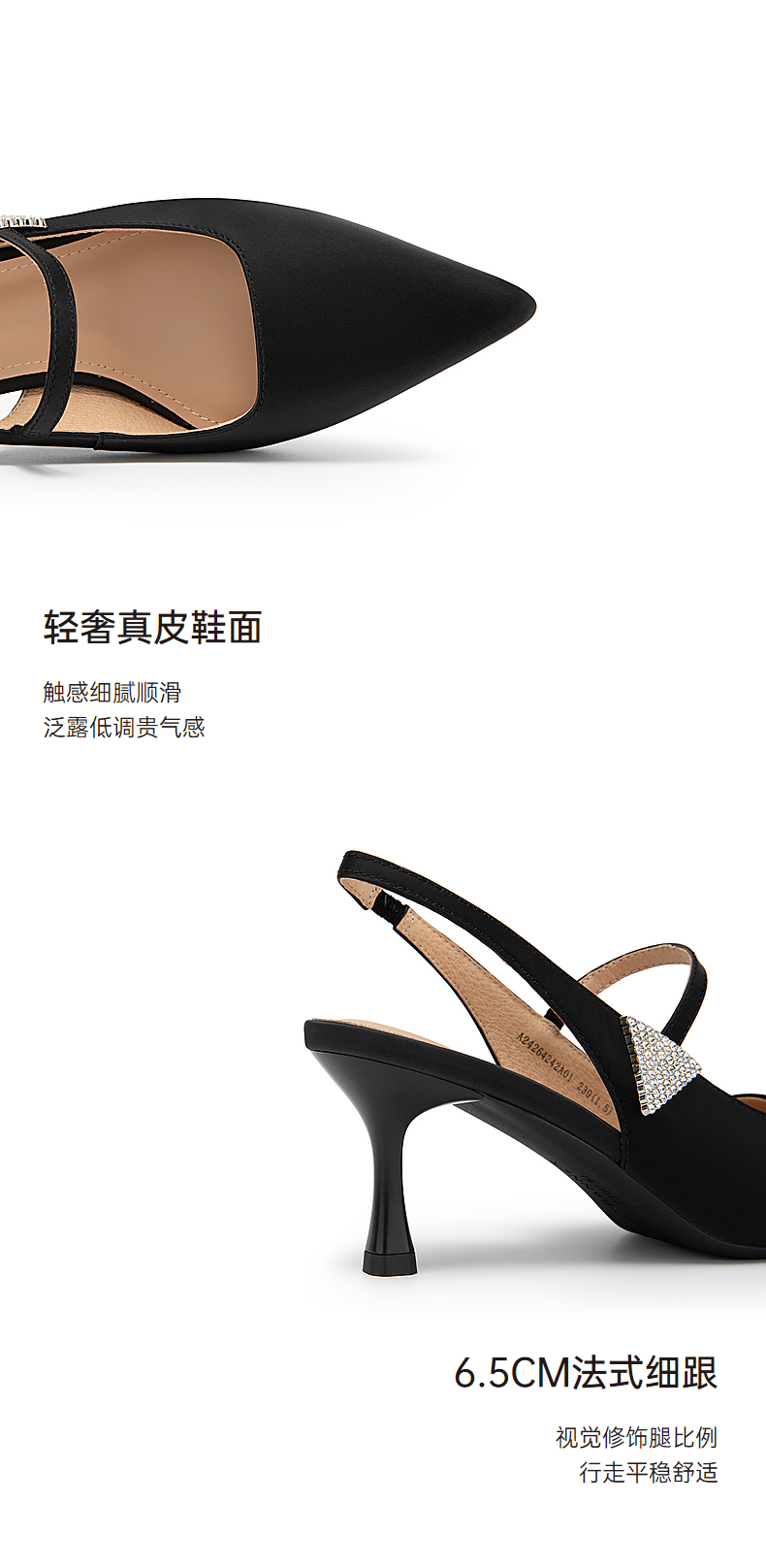 千百度绝美后空凉鞋女夏季细高跟鞋牛皮通勤外穿尖头单鞋A24264242