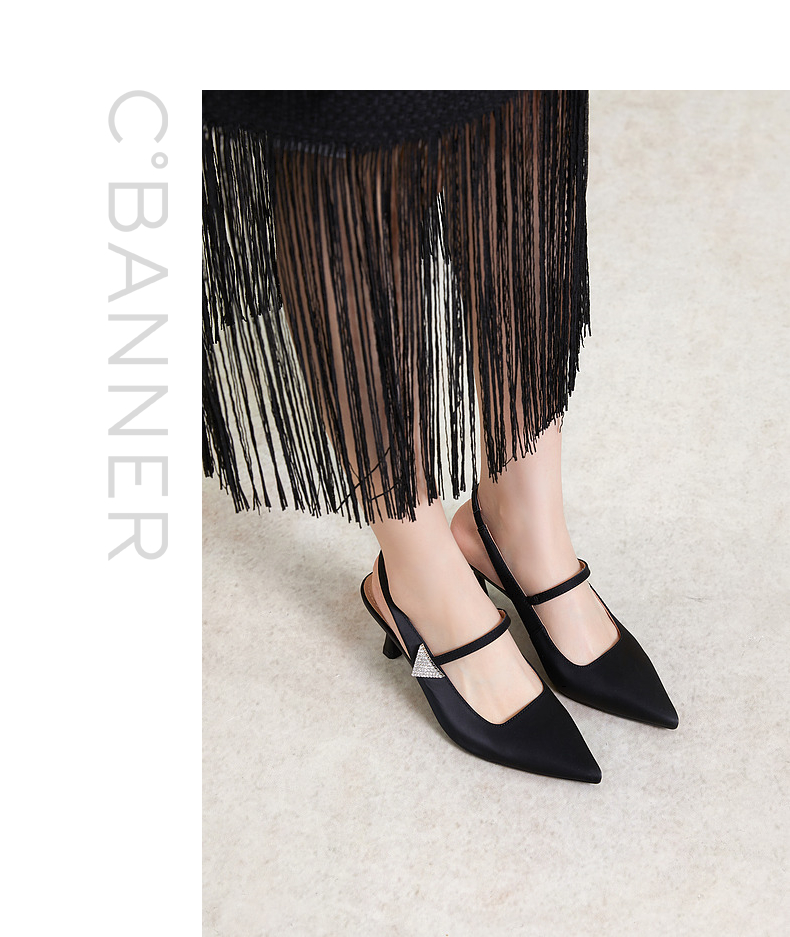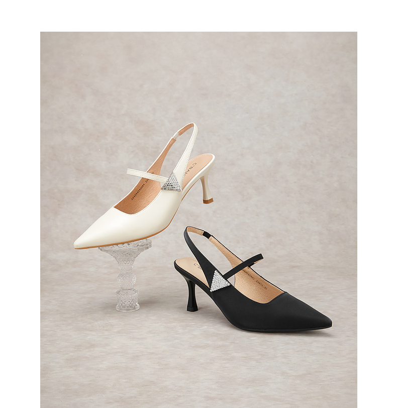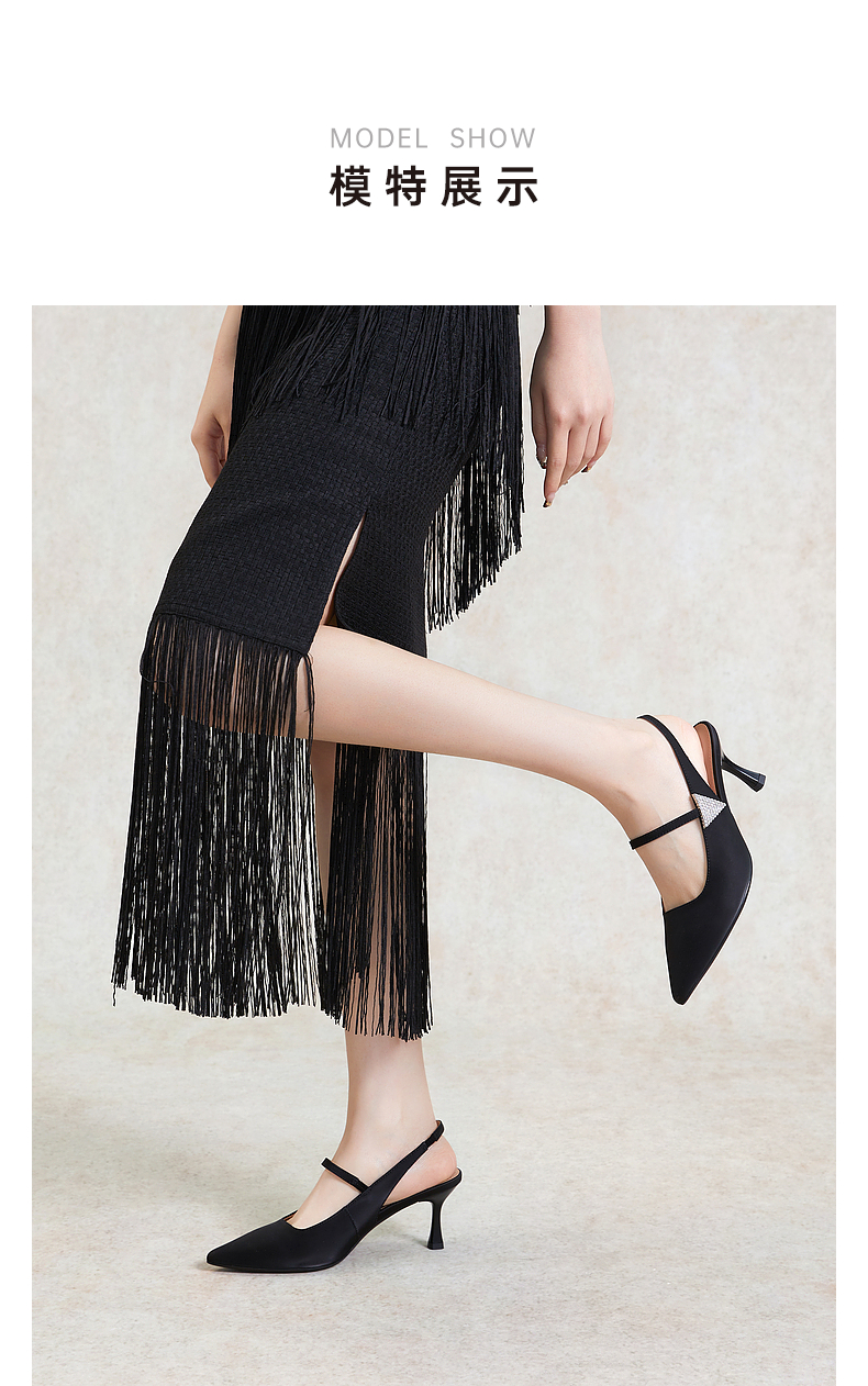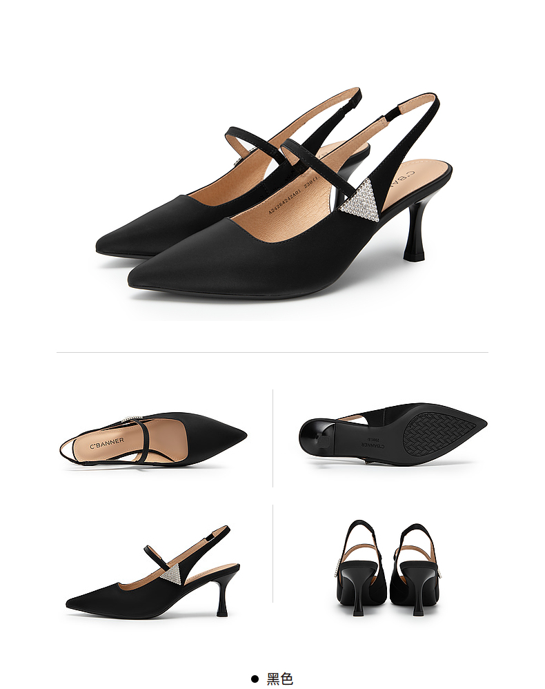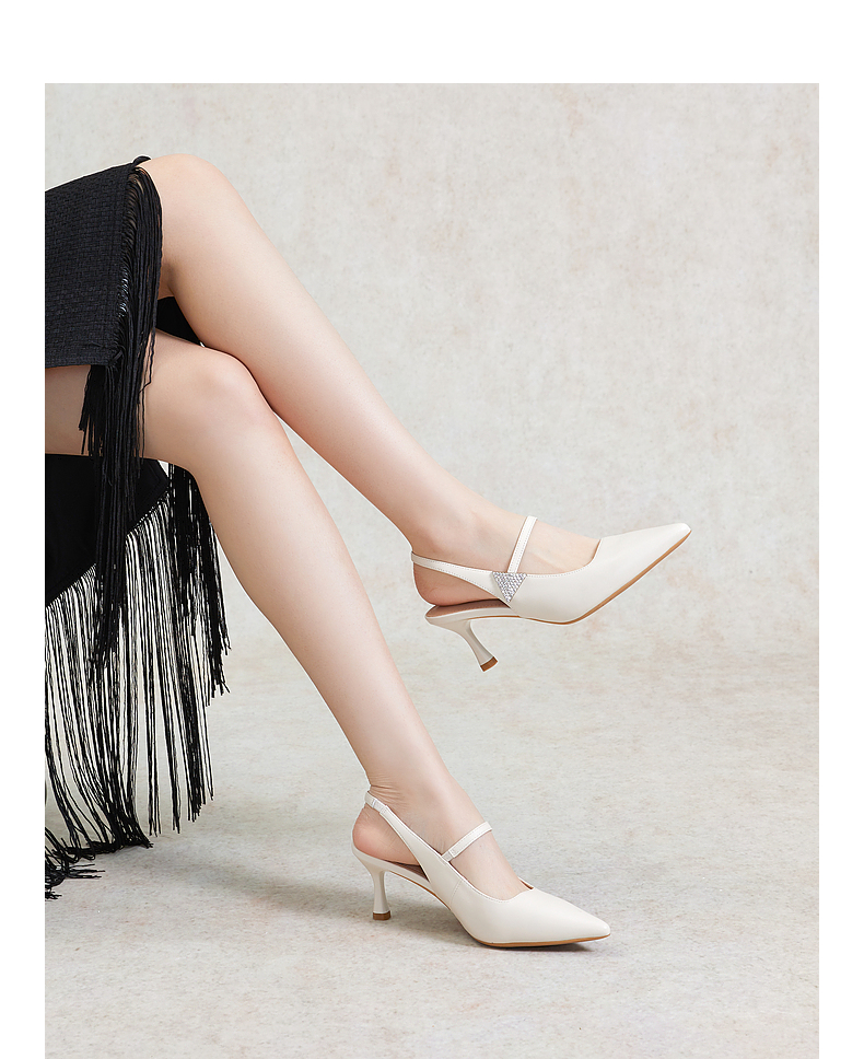 千百度绝美后空凉鞋女夏季细高跟鞋牛皮通勤外穿尖头单鞋A24264242